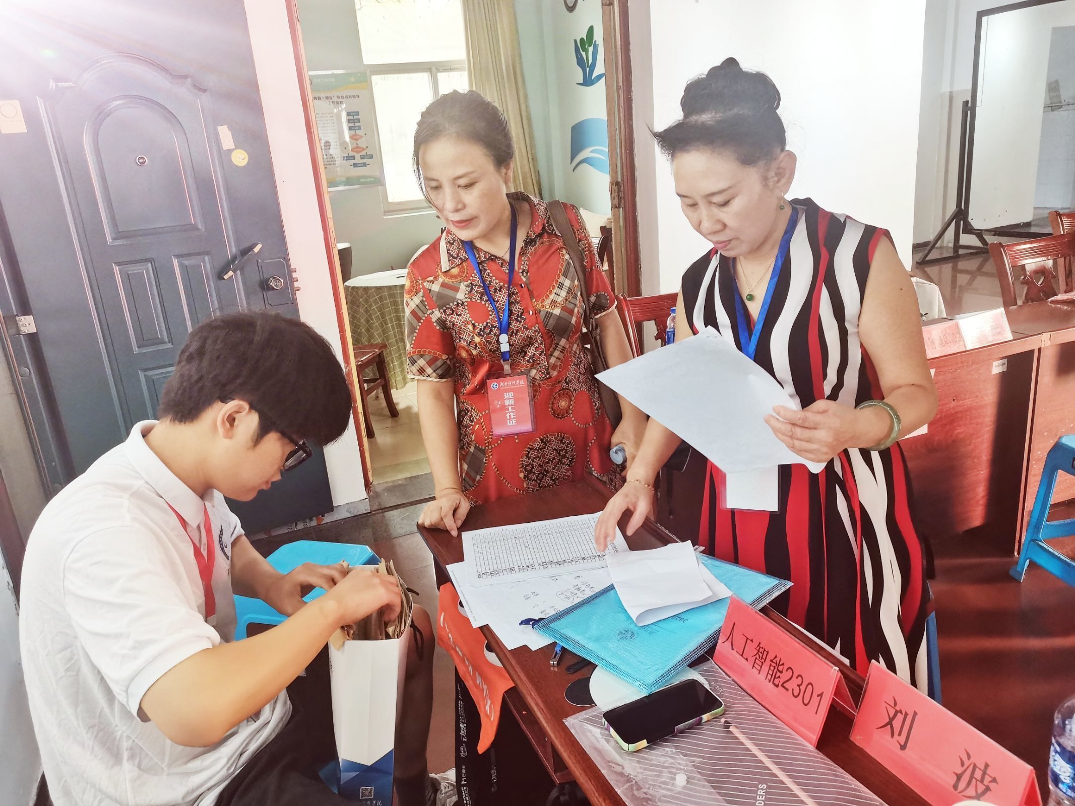 2023年9月9-10日,档案馆相关负责人深入各学院迎新一线,就学生、家长和学院辅导员对于档案相关问题进行答疑,对各学院收集的台账进行一一检查。各学院迎新现场档案收集工作井然有序,专人专管,馆院工作人员互动热烈而融洽。