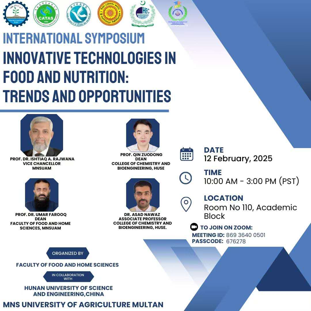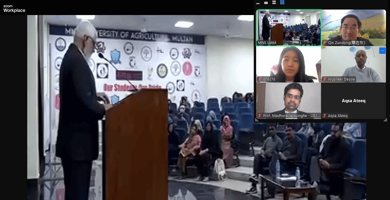 (本网讯 汪美凤)2月12日,由巴基斯坦 Muhammad Nawaz Shareef University of Agriculture 联合永利官网组织发起的“Innovative Technologies in Food and Nutrition: Trends and opportunities”(食品与营养创新技术:趋势与机遇)国际研讨会在巴基斯坦木尔坦以线上线下相结合的方式成功召开。来自巴基斯坦、中国、斯里兰卡等国家和地区的百余名专家学者出席了本次研讨会,共同探索食品营养的最新技术与未来发展趋势。