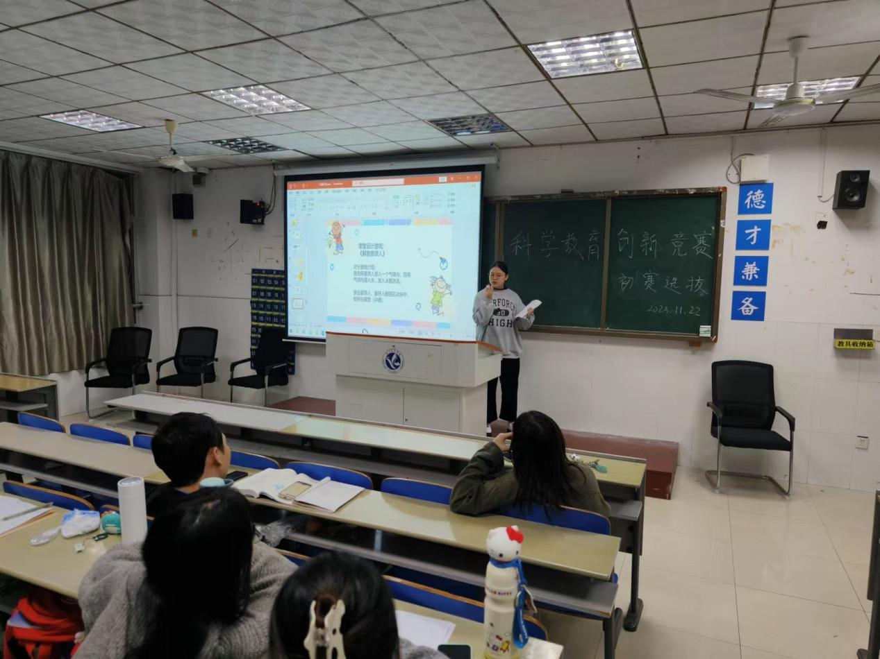 本网讯(曹颖 廖阳 林颖君)为深入贯彻习近平总书记“在教育‘双减’中做好科学教育加法”的指示,选拔优秀选手参加湖南省科学教育创新竞赛。11月26日上午9:00,化学与生物工程学院于逸夫楼323进行了2023年304am永利集团官网科学教育创新竞赛的初赛。本次比赛由廖阳老师和曹颖老师担任评委,参赛选手主要来自化学师范和生物技术师范两个专业,参赛方向为教学设计和教具设计两方面。