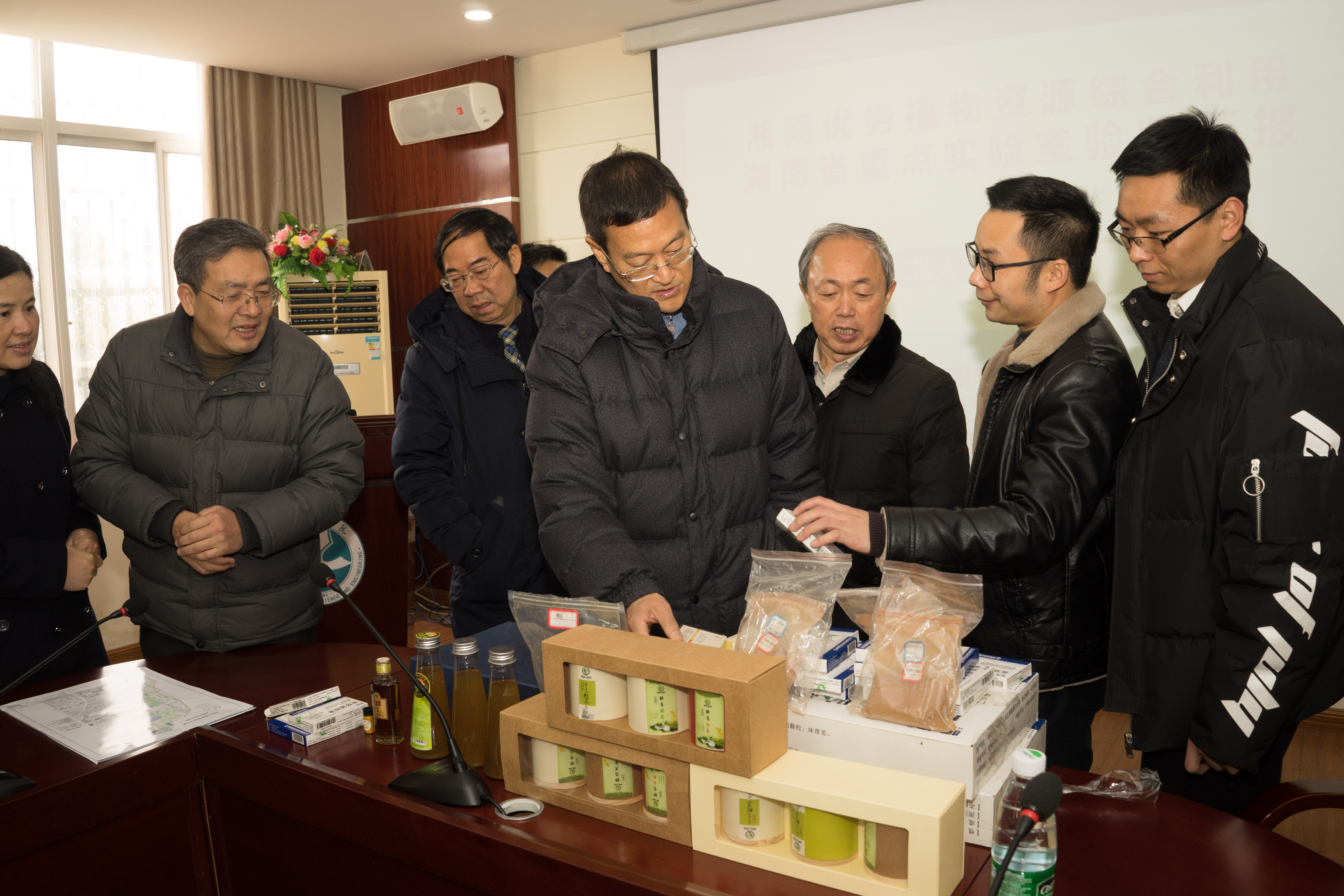1月10日,由省科技厅科研条件与基础研究处副处长李捷带队的专家组来永利官网对“湘南优势植物资源综合利用”湖南省重点实验室的建设运行情况进行考察和验收。