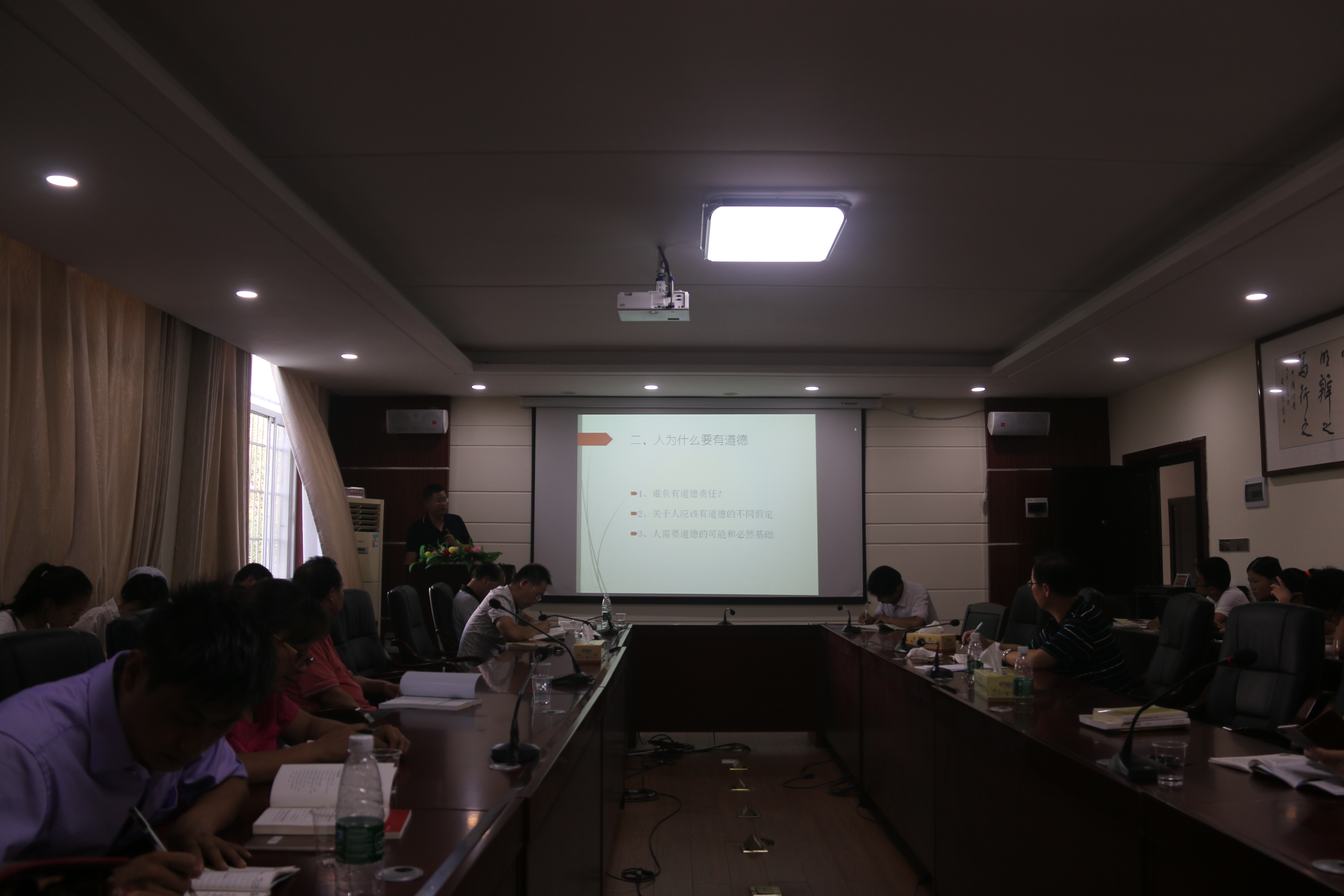 丁满花围绕“怎样做讲道德、有品行的合格的共产党员”这一主题,从共产党人应该具备的道德品行和怎样提高共产党员的道德品行两个方面进行讲解。饶赟的讲课围绕“道德”展开,从理论的层面分析讲述人为什么要讲道德以及怎样讲道德的问题。