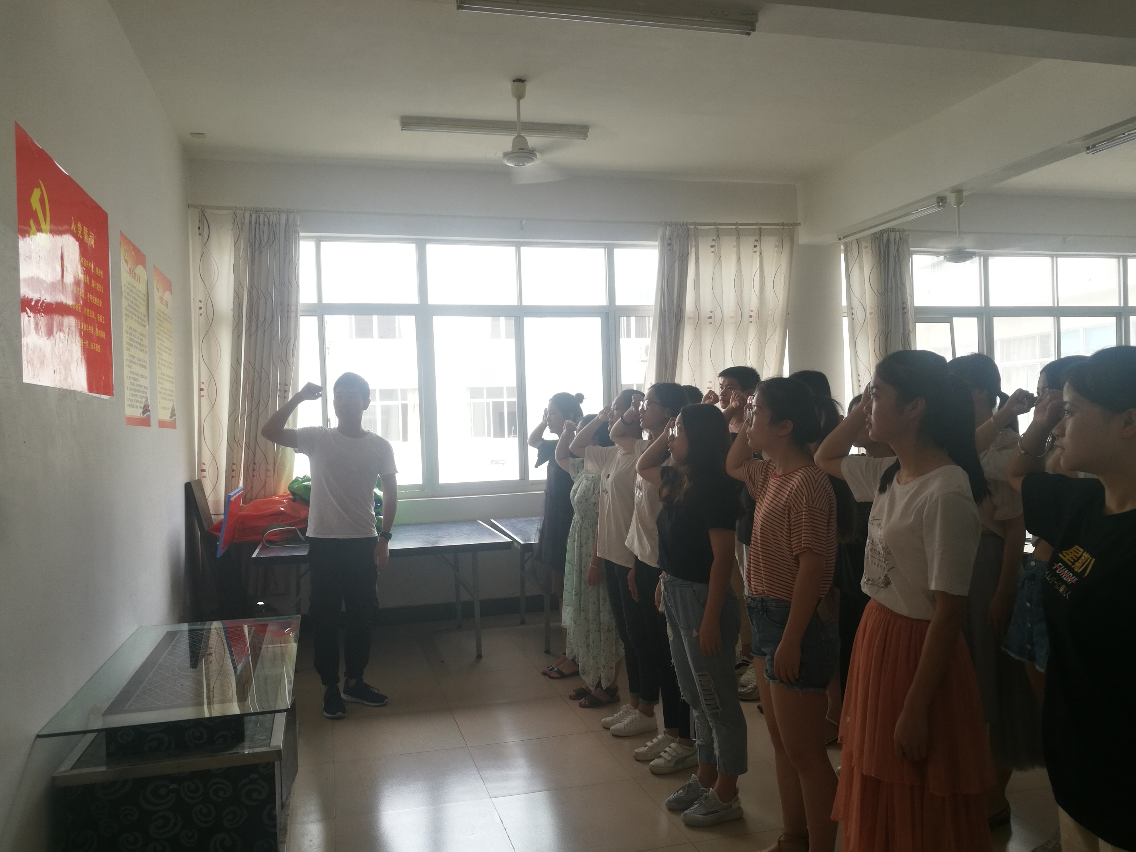 6月25日,学院党总支组织2019年上期新发展入党的20名学生党员在逸夫楼415党员活动室举行新党员入党宣誓仪式。