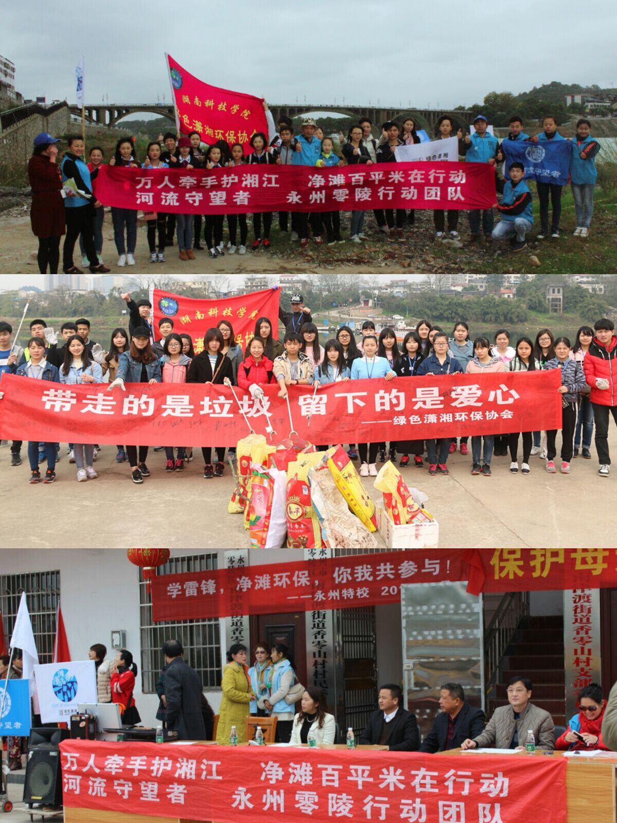 当我们谈及公益时,漆盈欣喜之情溢于言表。她是公益活动的践行者,伊始,怀着一份对保护环境的热忱积极的参加公益活动,志愿服务过程中对河流污染现状的思考及总结促使她从被动的参与者到活动积极的组织者的转变。从任职会长开始便积极策划护源行动,从校内到校外,提升环保意识。她更是高校社团与外界社会组织的联络者,在深刻意识到自身经验与实力的缺乏之下,主动寻求绿色潇湘与永州当地河流守望者的支持与帮助,在多次与学院领导和守望者的协商后,双方达成的友好的合作关系,守望者需要青年人的加入,志愿者保护母亲河的力量也日益强大。一年来身为护源使者的她们活跃在潇湘河畔,为了号召更多爱心人士的加入,宣传保护环境精神,她们还联合零陵区政府、零陵区环保局、零陵香零山社区、零陵特殊教育学校,零陵七层坡小学、柳子街小学与当地居民开展净滩活动。其组织策划的系列公益活动获多家媒体报道,取得了很不错的反响。