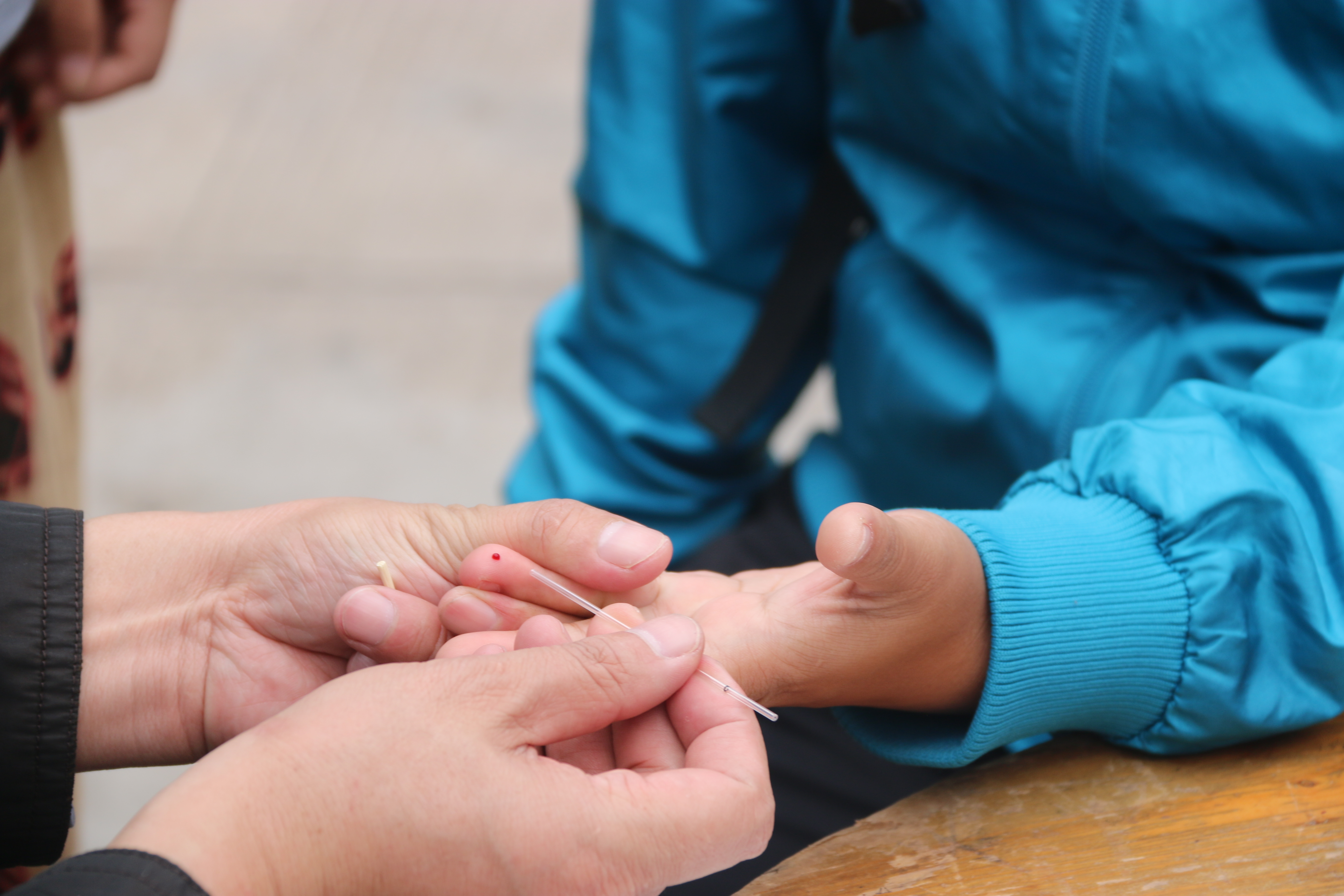 在志愿团的组织下,献血者按顺序进行填表登记、血型检测和抽血。在工作人员的讲解和鼓励下,每一位奉献爱心的同学都献出了300ml或400ml的鲜血。
