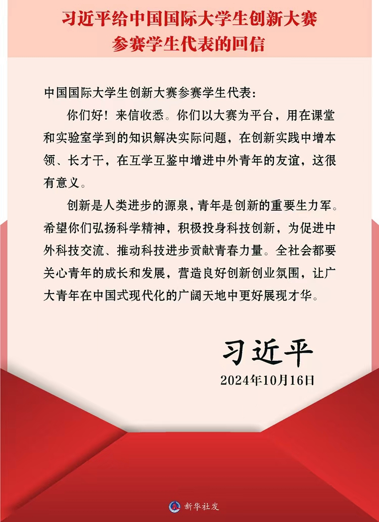 10月16日,中共中央总书记、国家主席、中央军委主席习近平在给中国国际大学生创新大赛参赛学生代表的回信中提到:“你们以大赛为平台,用课堂和实验室学到的知识解决实际问题,在创新实践中增本领、长才干,在互学互鉴中增进中外青年的友谊,这很有意义。”下一步,永利官网将认真学习习近平总书记重要回信精神,以创新大赛为契机,将其作为创新型人才培养的重要环节,鼓励学科交叉融合、协同创新,促进学生全面发展,深入推进人才培养模式改革,探索构建起“联结、赋能、服务”体系下的“三融四促”创新创业人才培养模式。