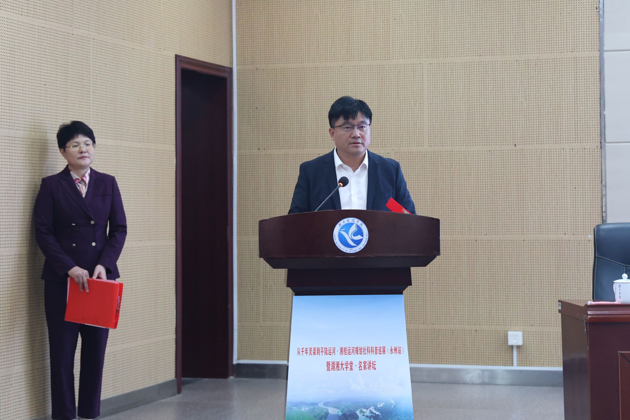 本网讯(记者 向薛峰 摄影 张倍嘉 温百石)11月7日,由中共湖南省委宣传部、湖南省社科联、广西社科联主办的2024年第4期“湖湘大学堂·名家讲坛”在永利官网举行。广西社科联副主席刘俊,湖南省社科联党组成员、副主席、秘书长(兼)贺建湘,永州市委常委、宣传部部长吴恢才,校党委书记李钢,校党委副书记、社科联主席宋宏福出席活动,活动由贺建湘主持。