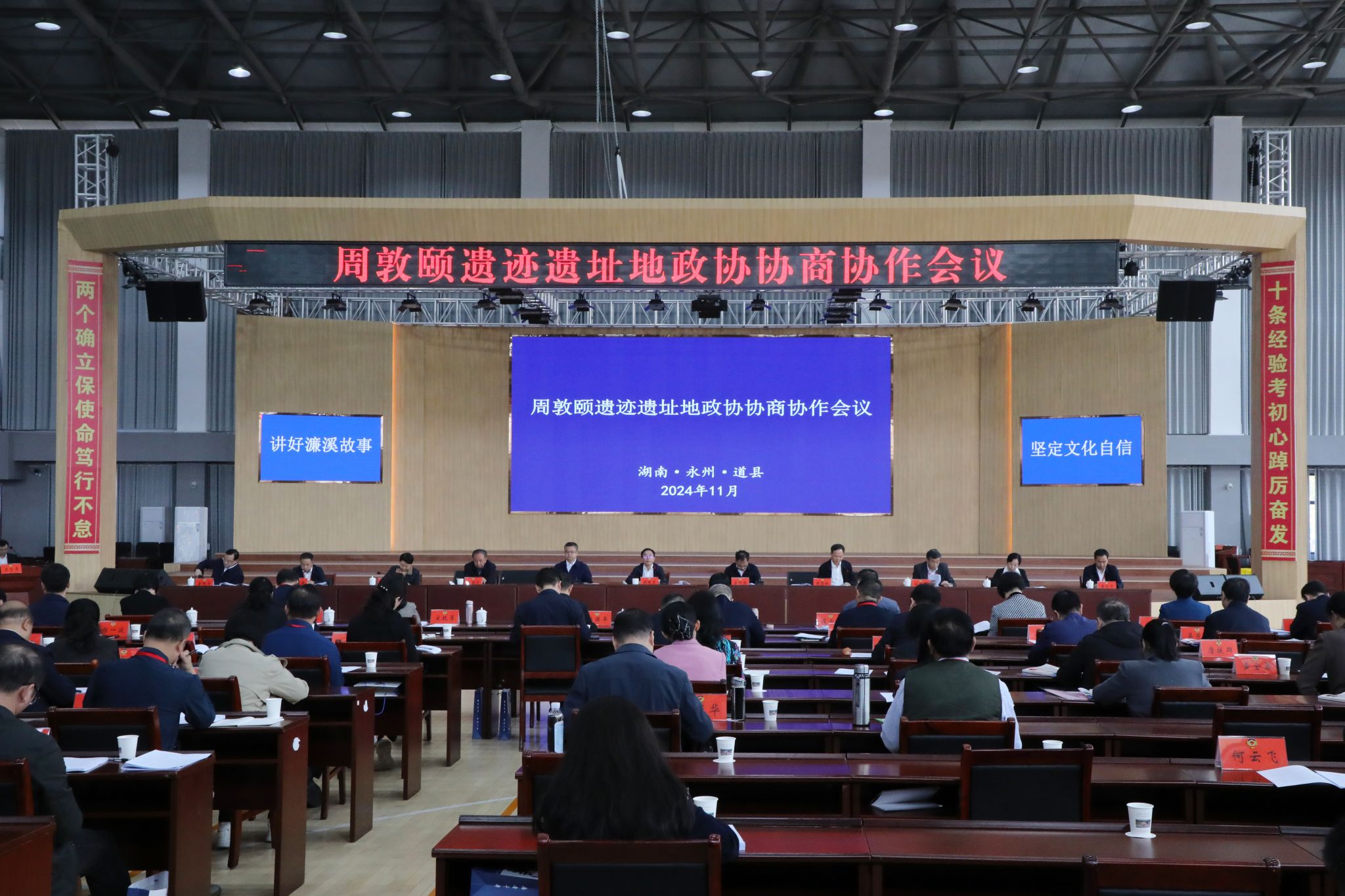 本网讯 11月5日至7日,由湖南省政协文教卫体和文史委、永州市政协和永利官网共同主办的周敦颐遗迹遗址地政协协商协作会议在永州市道县举行,湖南省政协副主席、民建湖南省委会主委赖明勇,湖南省政协文教卫体和文史委主任雷鸣强,永州市委副书记、统战部部长侯文出席并讲话,永州市政协党组书记、主席谢景林主持。永州市委常委、宣传部部长吴恢才,永州市副市长周云玲,校长黄创霞等参会。