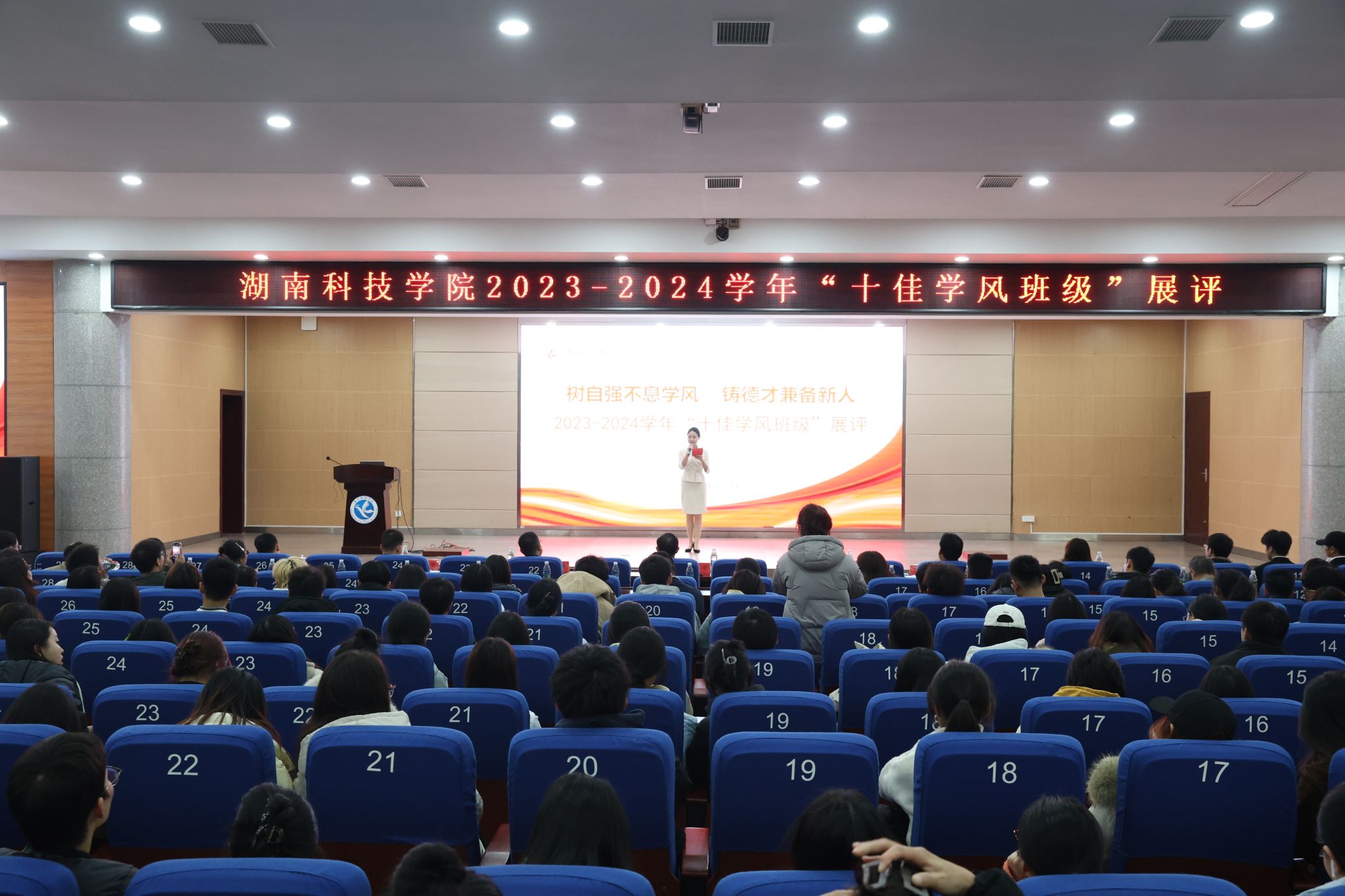 本网讯(通讯员 吕文青)为进一步加强学风建设,通过选树优秀学风班级,充分发挥榜样引领作用,带动全校学风进一步提升,12月5日晚,永利官网2023-2024学年“十佳学风班级”展评活动在潇湘大讲堂举行。校党委委员、副校长吴小林出席活动,宣传统战部、学生工作部、发展规划与学科建设处、后勤服务中心、教务处、教学质量管理处负责人参加活动并担任评委。