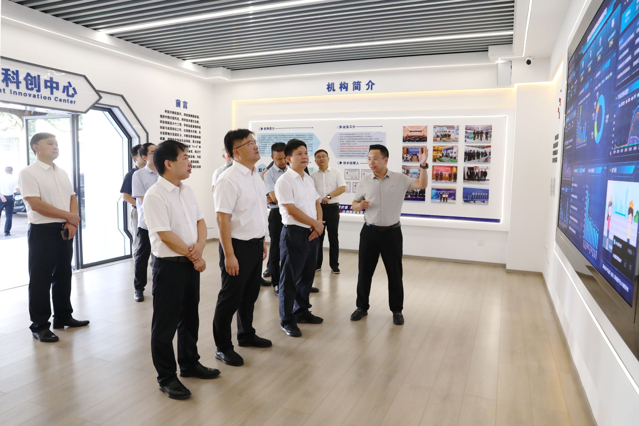李钢代表学校衷心感谢永州市委市政府长期以来对学校的关爱、支持与帮助。在智汇科创中心,他简要汇报了学校服务地方经济的主要成绩,着重介绍了潇湘科创院的筹建情况。他指出,筹建中的潇湘科创院要紧密对接地方产业需求,围绕永州稀土产业链、锰锂矿资源开发和智慧农业等领域开展技术攻关、平台共建和人才培养,全力以赴推动校地合作,确保项目真正落地见效。