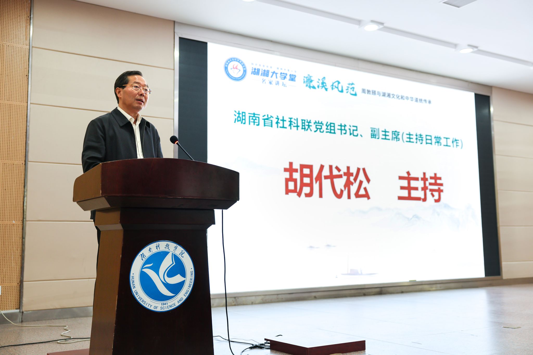 本网讯(通讯员 黄渊基 张琳 摄影 朱浩然)10月31日,由中共湖南省委宣传部、湖南省社科联主办,永利官网承办的2025年第3期湖湘大学堂·名家讲坛在永利官网开讲。本期活动特邀中国人民大学哲学院教授、博士生导师,中国人民大学孔子研究院院长,中国实学研究会和合文化专委会会长彭永捷教授担任主讲人,以《周敦颐与湖湘文化和中华道统传承》为主题进行授课。湖南省社科联党组书记、副主席(主持日常工作)胡代松,永州市委常委、市委宣传部部长吴恢才,校党委书记李钢,党委副书记、校长黄创霞,党委委员、副校长李常健参加活动。省社科联干部代表、永州市社科工作者代表、媒体记者、市民代表以及永利官网师生代表等近600人到现场聆听。