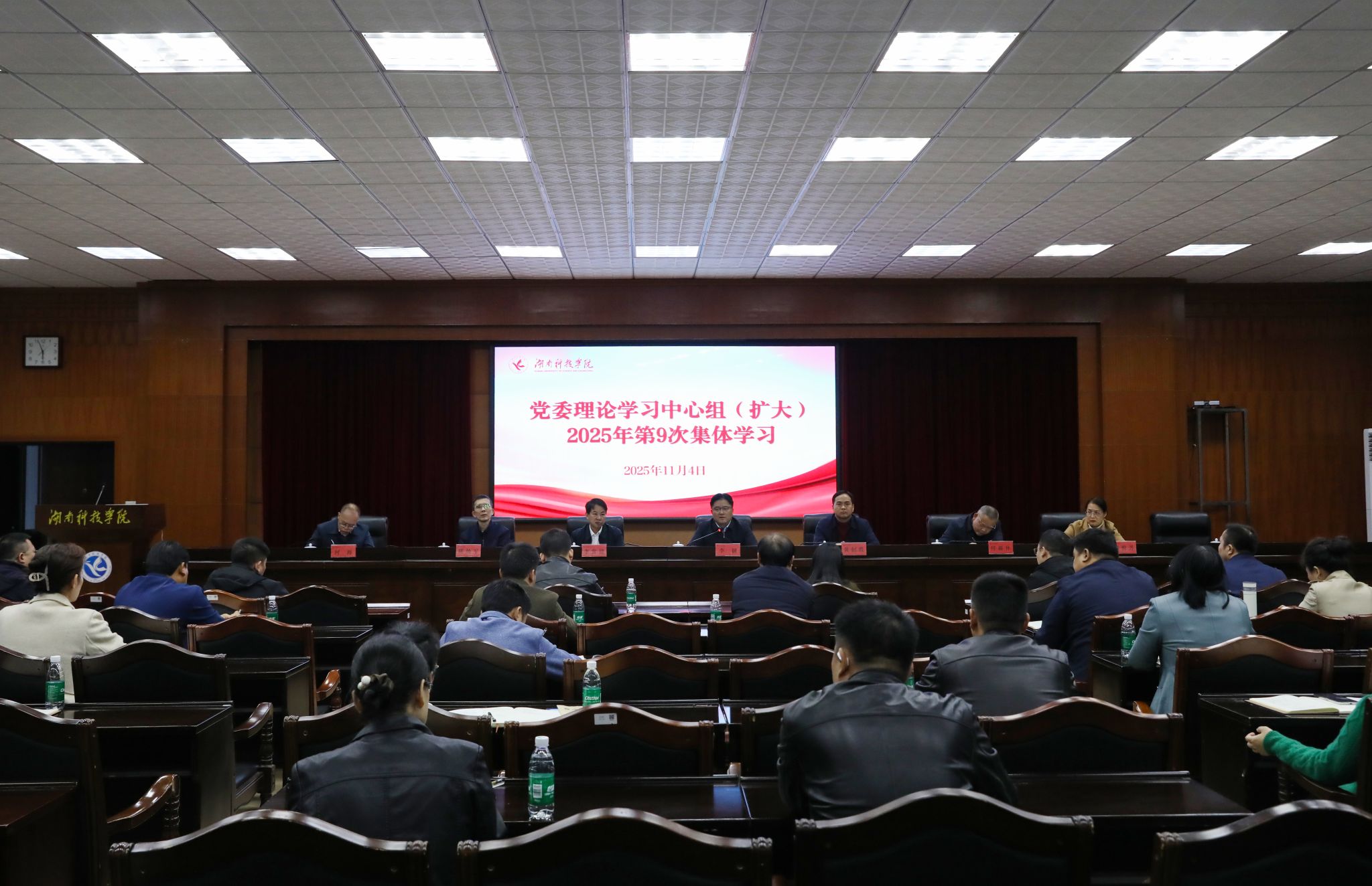 本网讯(记者 向薛峰 摄影 谢志豪)11月4日,学校党委理论学习中心组开展2025年第9次集体(扩大)学习,深入学习贯彻党的二十届四中全会精神,强调要深刻领会全会提出的一系列重大思想观点、重大战略部署,扎实推动学校事业高质量发展。党委书记李钢主持学习并讲话,全体党委委员参加学习,副校长郑银芳,全体中层正职列席。