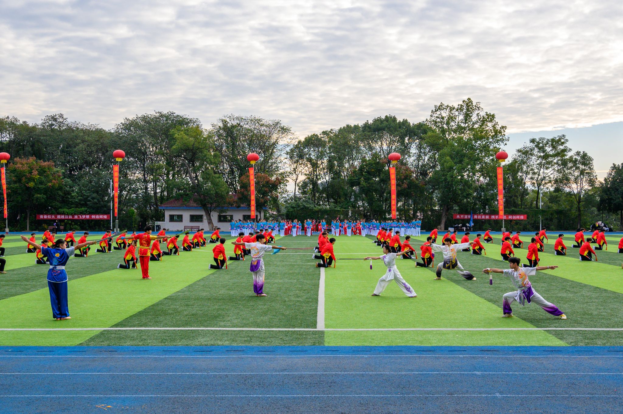 五颜六色的气球放飞天空,全场掌声雷动。在观众热情的欢呼与喝彩声中,体育学院的健儿们表演节目《武林风采》,打出了东安拳的气势,打出了运动健儿们的态度与信心。美术学院、体育学院、音乐与舞蹈学院联合演绎的啦啦操《青春正当时》活力登场,这支队伍曾亮相湘超赛场,为永州VS长沙赛事助力,马上又将助阵永州迎战娄底。校运赛场与湘超赛场相连,动感舞姿串联赛场激情,绽放竞技与活力的双重魅力。