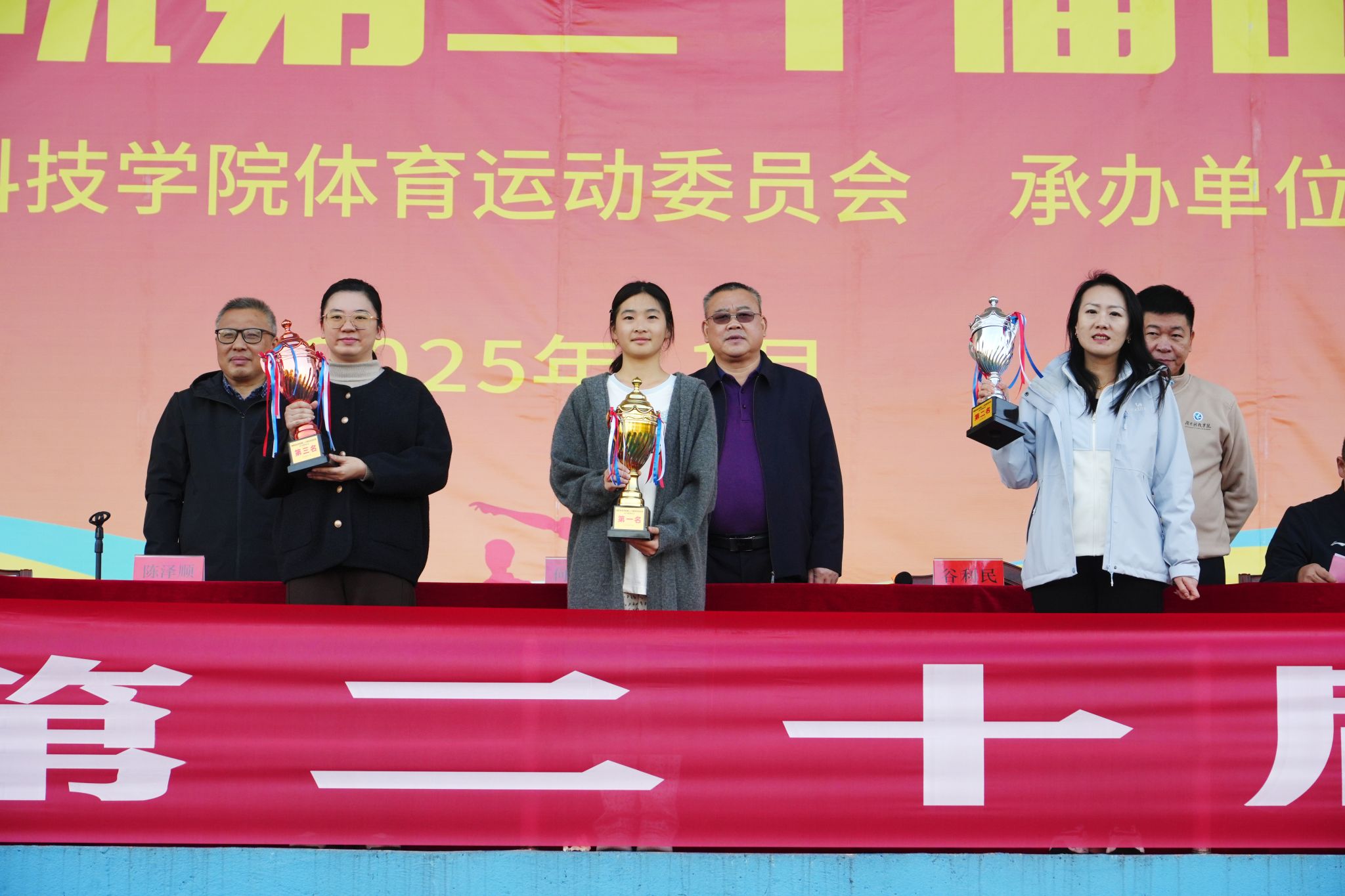 本网讯(记者 彭晥君 刘芳均)11月21日,经过两天的激烈角逐,永利官网第二十届田径运动会圆满闭幕。党委委员、副校长、校体委主任何福林出席活动,为获奖个人和团体颁奖、表示祝贺。校体委成员、各教学学院领导、各代表队领队、教练员、运动员参加闭幕式。