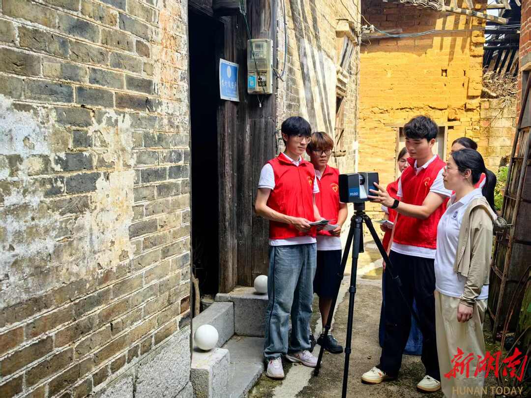 活动还尤其聚焦传统村落保护。在村“两委”的协助下,师生们运用专业设备,对村内具有近200年历史的老祠堂及数栋传统民居进行全面测绘,通过三维激光扫描技术和无人机倾斜摄影测量技术,精准记录建筑细节,为后续的数字化保护和修复提供科学依据。通过互动交流,村民们纷纷惊叹科技为古建保护打开的崭新视窗,让大家对家乡的历史文化有了更深刻的认识。
