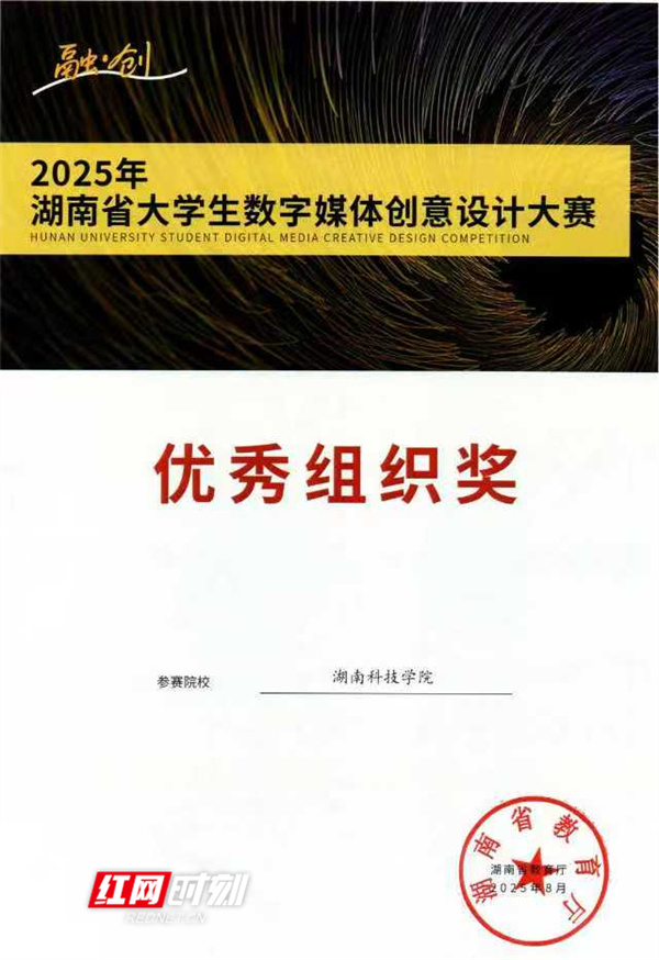 红网时刻新闻9月17日讯(通讯员 付星星 向薛峰)近日,2025年湖南省大学生数字媒体创意设计大赛获奖名单正式公布。304am永利集团官网美术与艺术设计学院师生凭借扎实的专业功底和卓越的创新能力,共斩获等级奖项49项,其中一等奖8项、二等奖13项、三等奖28项,获奖数量和质量均位居全省前列,并被授予“优秀组织奖”。