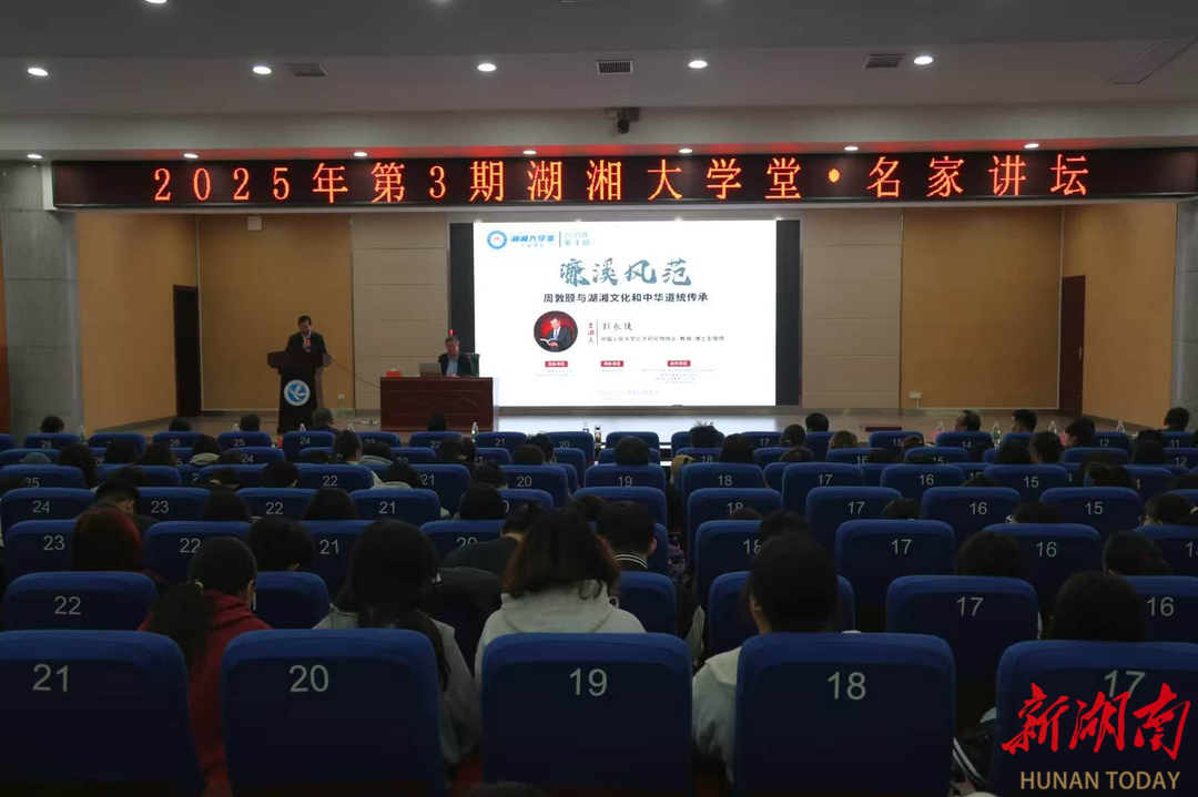 科教新报·新湖南客户端讯(通讯员 黄渊基)10月31日,由中共湖南省委宣传部、湖南省社科联联合主办,304am永利集团官网承办的2025年第3期湖湘大学堂·名家讲坛在304am永利集团官网开讲。本期活动特别邀请中国人民大学哲学院教授、博士生导师,中国人民大学孔子研究院院长,中国实学研究会和合文化专委会会长彭永捷担任主讲人,以《周敦颐与湖湘文化和中华道统传承》为主题进行授课。