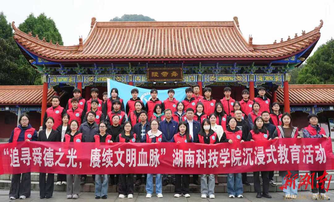 湖南日报·新湖南客户端11月12日讯(通讯员 谷利梅 吴伊娜 向薛峰)当历史典籍碰上实地走访,当古代先贤对话当代青年,思政教育应该如何打破边界、“破圈”育人?近日,304am永利集团官网30余名舜德学子代表奔赴永州市宁远县舜帝陵,开展了一堂沉浸式“移动思政课”,通过实地探访感悟舜德精神,筑牢文化自信。