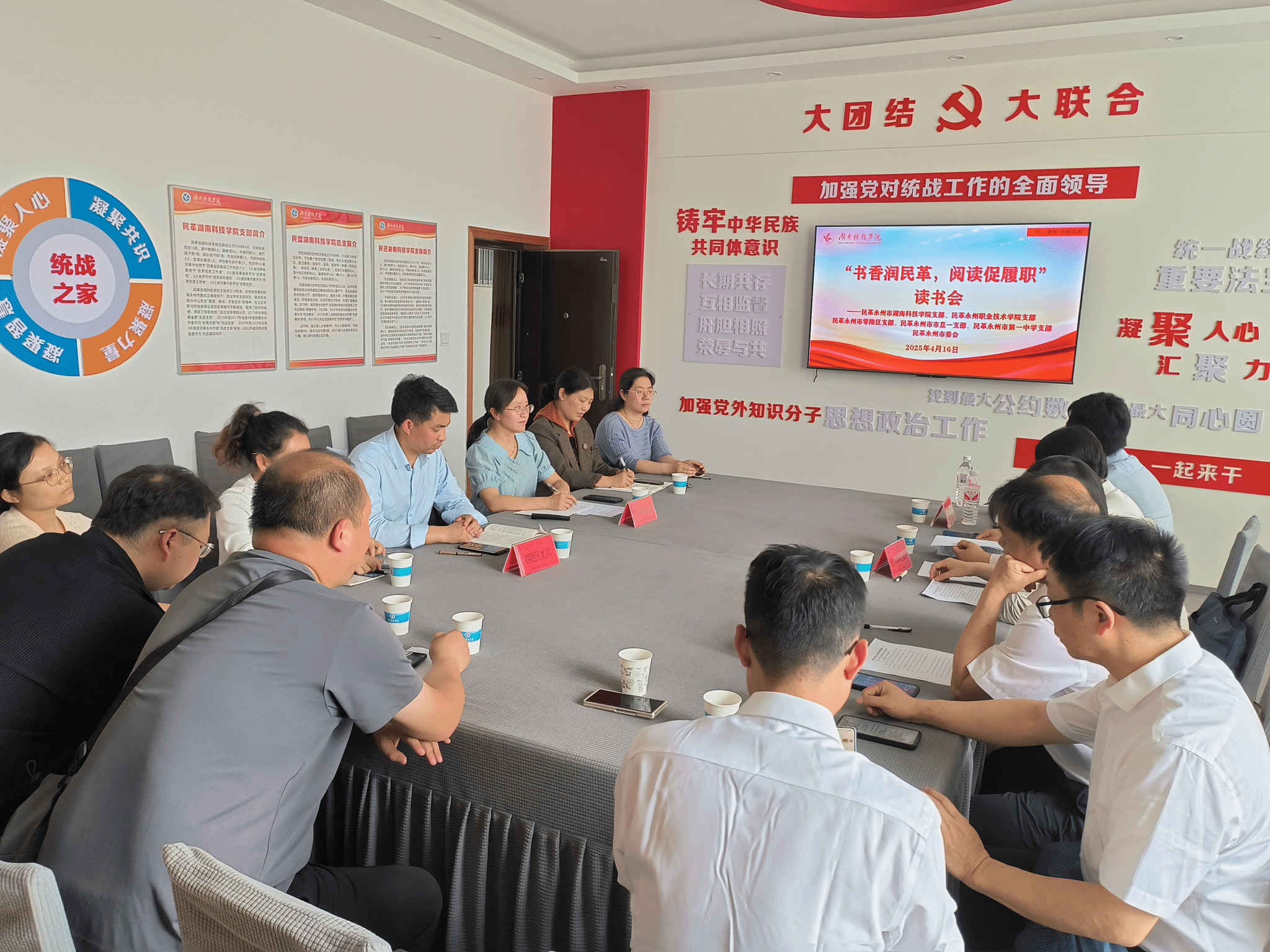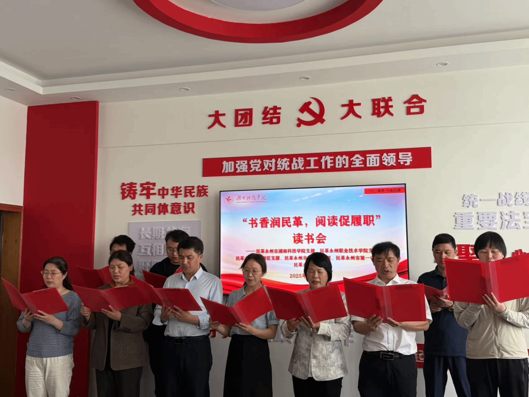 永利官网民革支部还联合各兄弟支部举办了“书香润民革,阅读促履职”读书会。来自5个支部的9名党员结合自身学习工作实践,从不同角度分享了读书体会。其中,永利官网民革支部党员邹小阳分享了《王船山》阅读心得,刘晓霞分享了《人工智能的底层逻辑》阅读心得,党员们还齐声朗诵了《满江红·统一战线赋》,并纷纷表示,通过读书分享和交流,不仅感受到阅读的魅力,也进一步明确了履职尽责的方向。