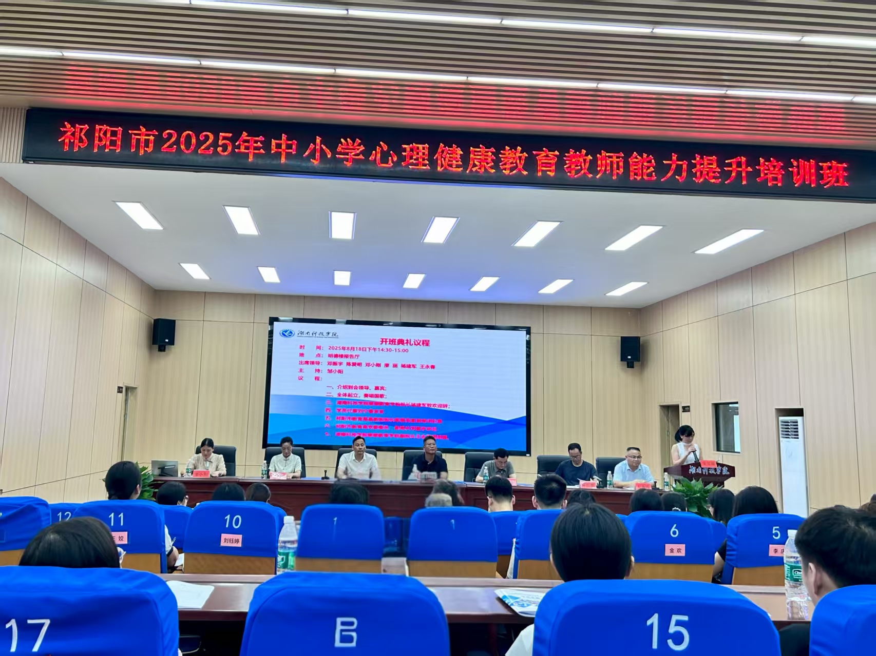 本网讯(通讯员 曹湖云 于碧)8月18日,祁阳市2025年中小学心理健康教育教师能力提升培训班在永利官网开班。祁阳市教育局党委委员、副局长邓振宇,祁阳市教师进修学校、304am永利集团官网继续教育学院相关负责人及80名祁阳市中小学心理健康教育教师参加开班典礼。