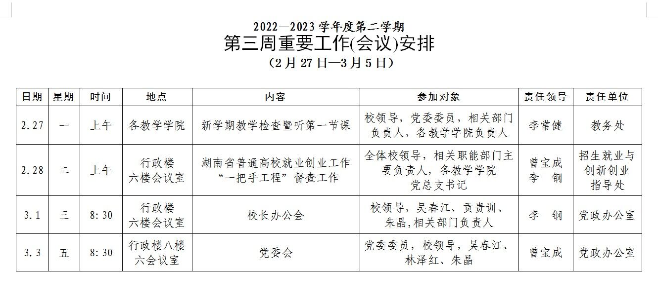 [党政办]第三周重要工作(会议)安排(2月27日一3月5日)