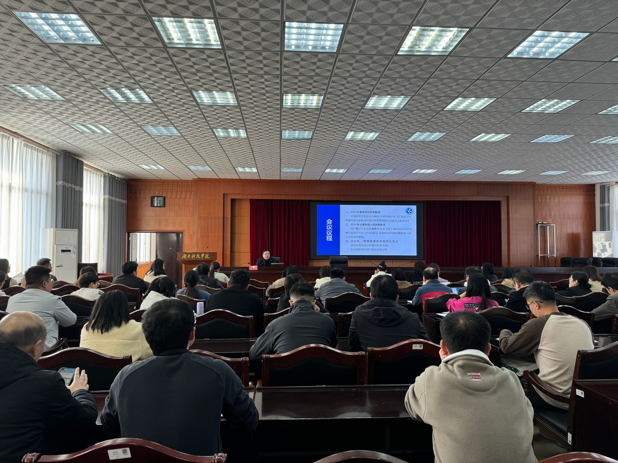 会上,唐艳桂围绕“以零为基”、“以事定钱”、“以效促用”三个原则领学毛伟明同志《在全省深化零基预算改革推进财政科学管理电视电话会议上的讲话》,要求各校属单位预算申报负责人把握“四个统筹”、把牢“五个重点”,压实预算填报工作责任。