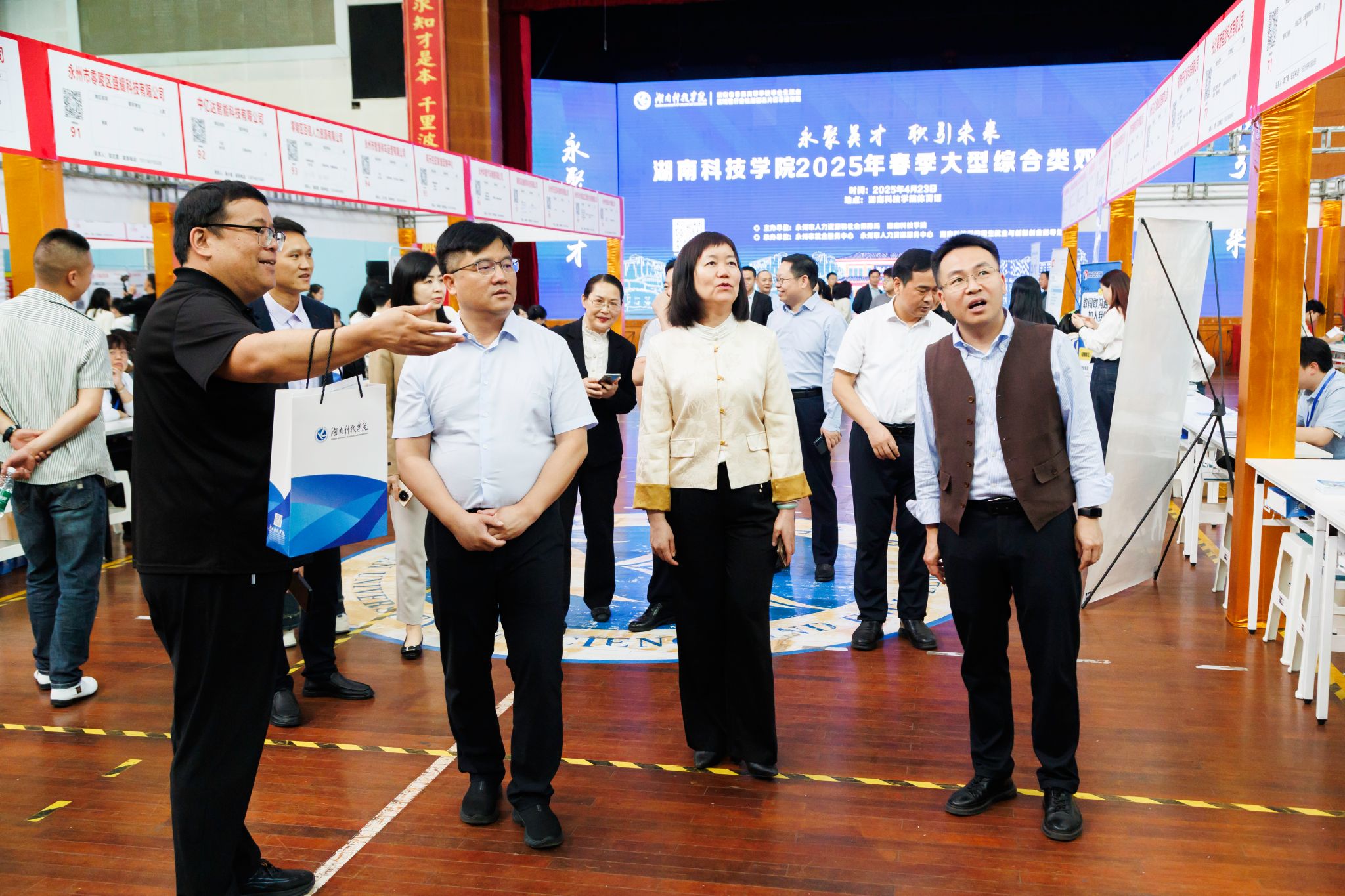 为深入贯彻落实国家稳就业政策,搭建优质“政校企对接平台”,4月23日上午,中共304am永利集团官网机关第十二党支部联合国家税务总局永州市税务局参加由永利官网承办的“2025年春季大型综合类双选会”。活动以“永聚英才、职引未来”为主题,吸引了全市180多家用人单位及4276名应届大专院校的毕业生。校党委书记李钢,党委副书记、校长黄创霞,副校长郑银芳,永州市人力资源和社会保障局党组书记、局长、一级调研员骆方方,永州市人力资源和社会保障局副局长陈巍出席双选会。
