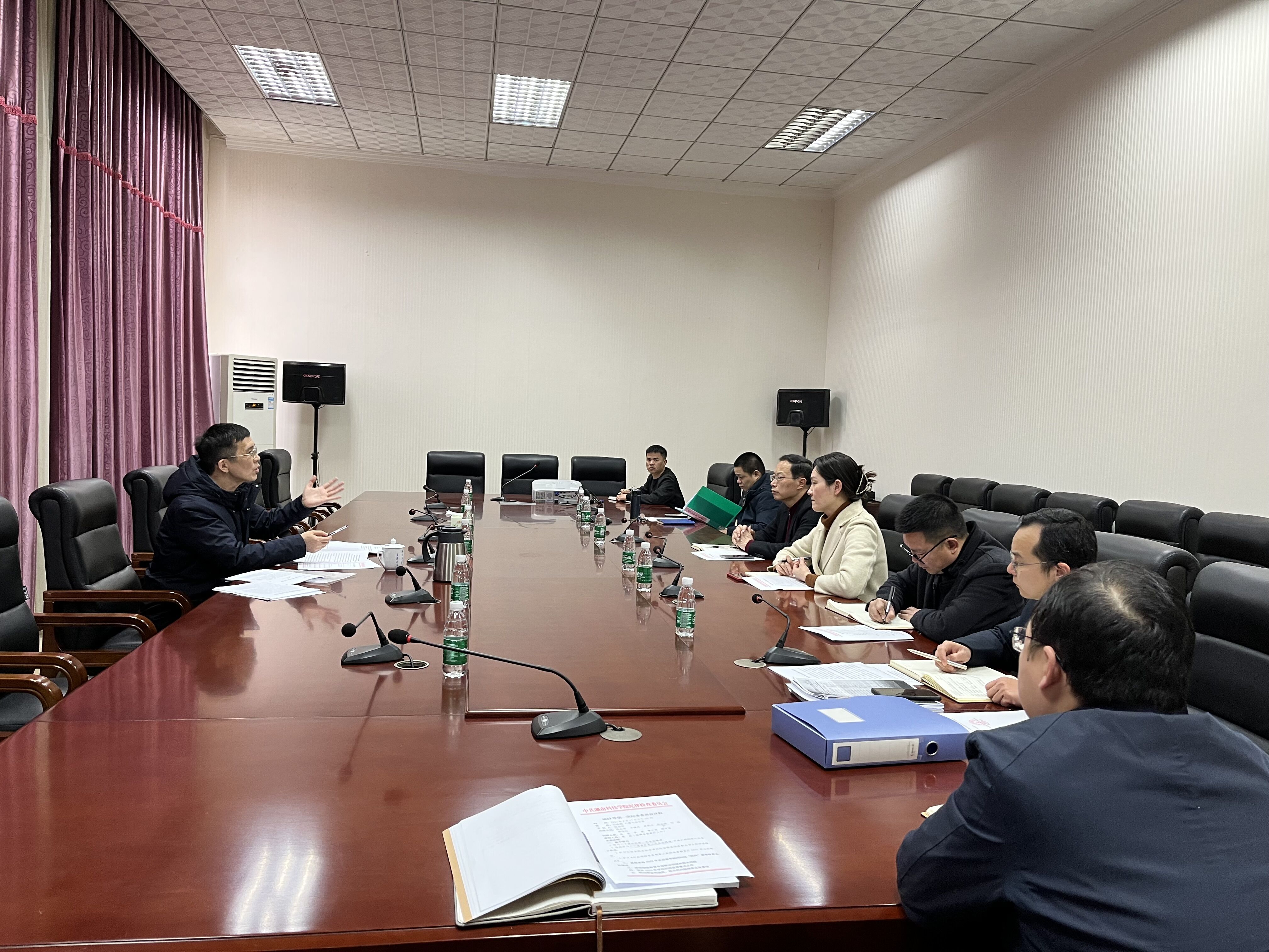 本网讯(通讯员覃小明)17日下午,校党委委员、纪委书记、省监委驻校监察专员陈灿军在行政楼八楼七会议室主持召开2023年第一次纪委委员会议,全体纪委委员参加。