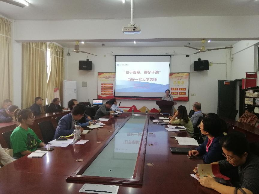 为了全面实现教书育人、立德树人的根本任务,进一步提升课堂教学质量,充分发挥优秀教师的引领和辐射作用,2023年10月24日下午,理学院在明理楼308会议室召开了“如何成为一名优秀的大学教师”交流分享会。会议邀请了2023年“永州市优秀班主任”和校师德标兵朱湘萍老师分享经验,全体理学院教师参加了此次会议。