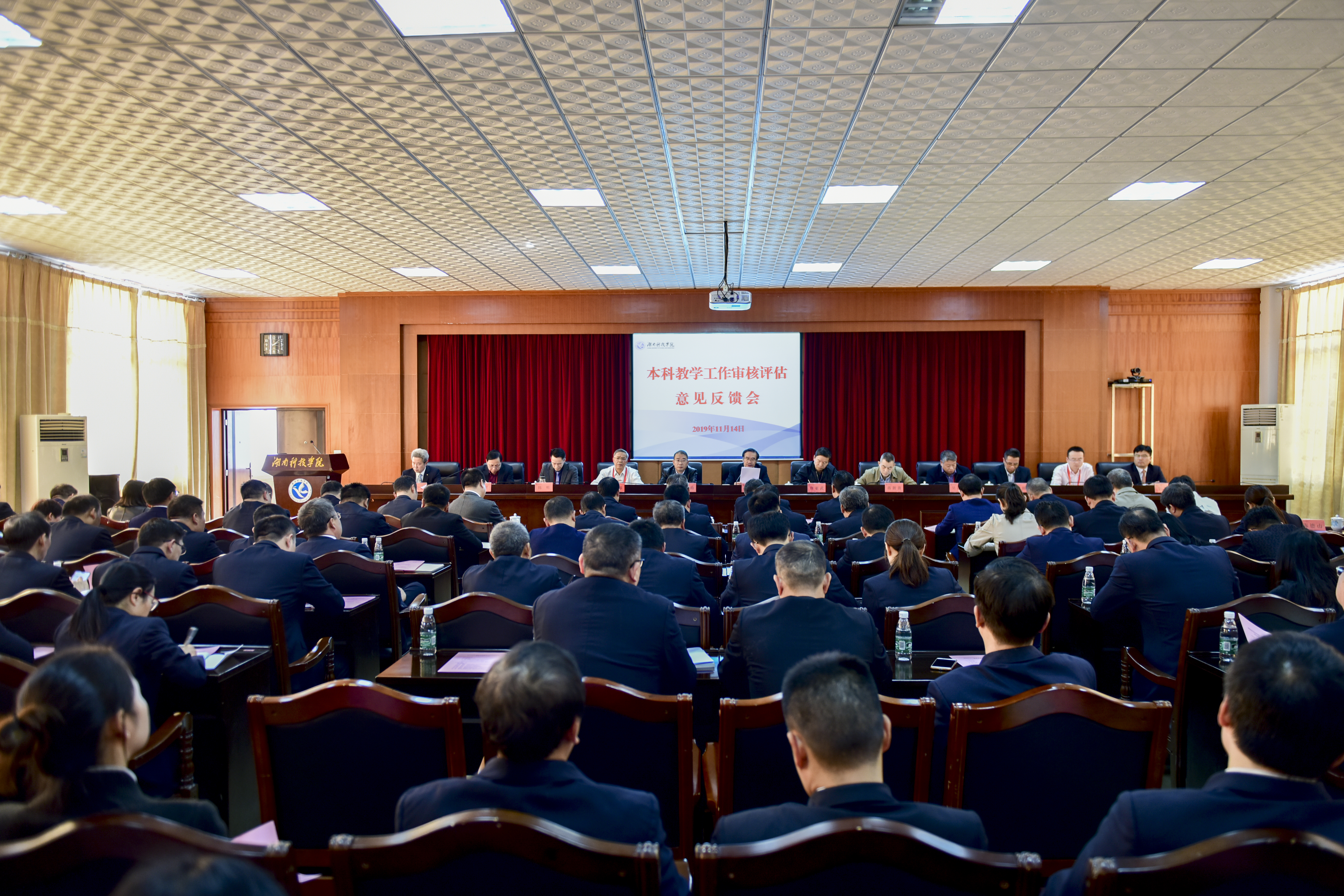 李向农代表评估专家组向学校反馈意见。在为期4天的现场考察评估中,专家组集中考察了化学与生物工程学院、美术与艺术设计学院、创新创业学院和国学院;访谈了9位校领导,深度访谈16个教学单位和30个职能部门,共计86人次;召开座谈会50场,涉及师生430人次;听课看课共计59门次 ;查阅了14个教学学院的48个专业的40门课程6695份试卷;调阅了14个教学学院20个专业1255分毕业设计和论文;考察了2个校外实习基地、2个用人单位。在深入考察基础上,专家组还多次召开碰头会,交流考察感受。
