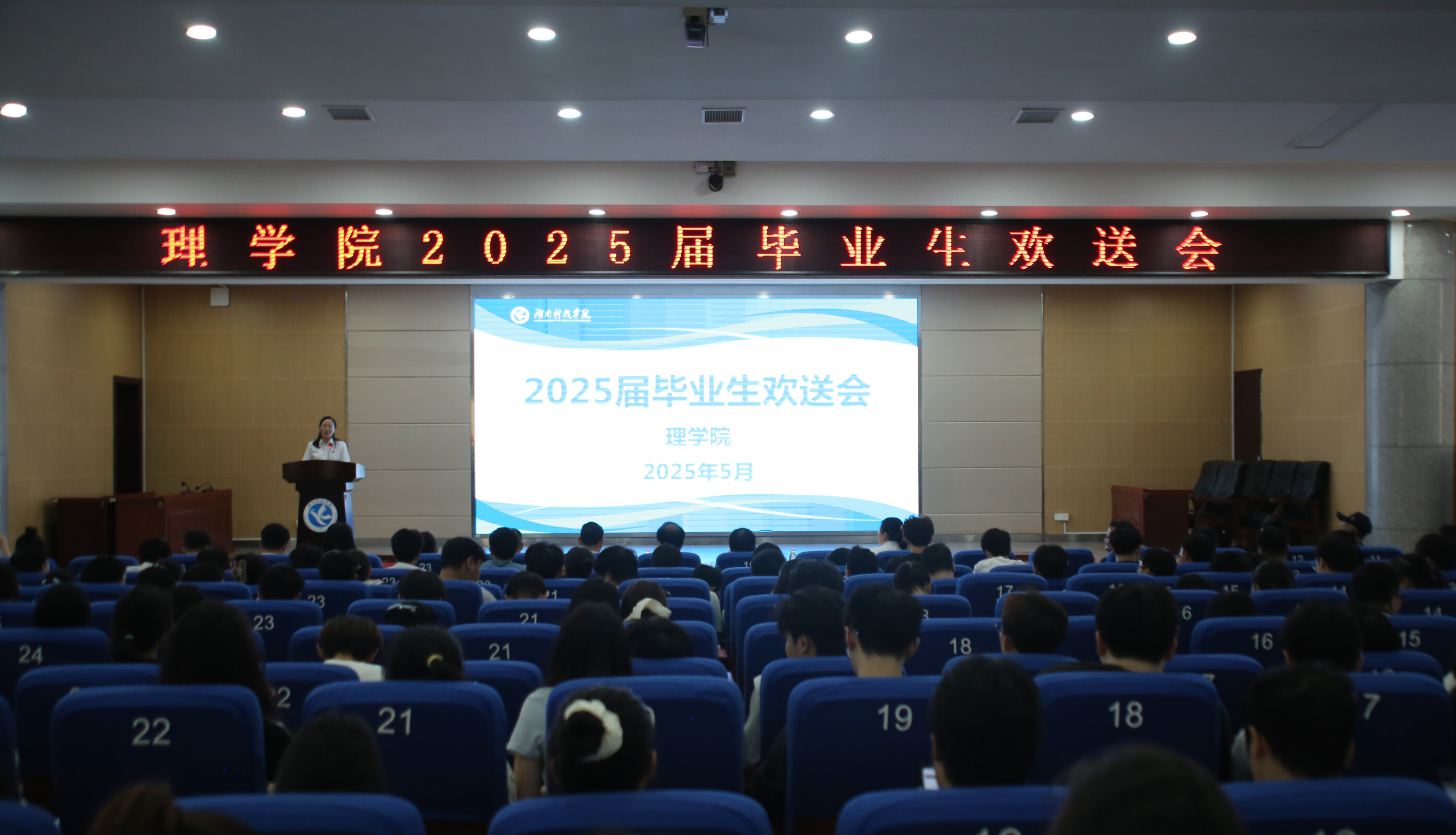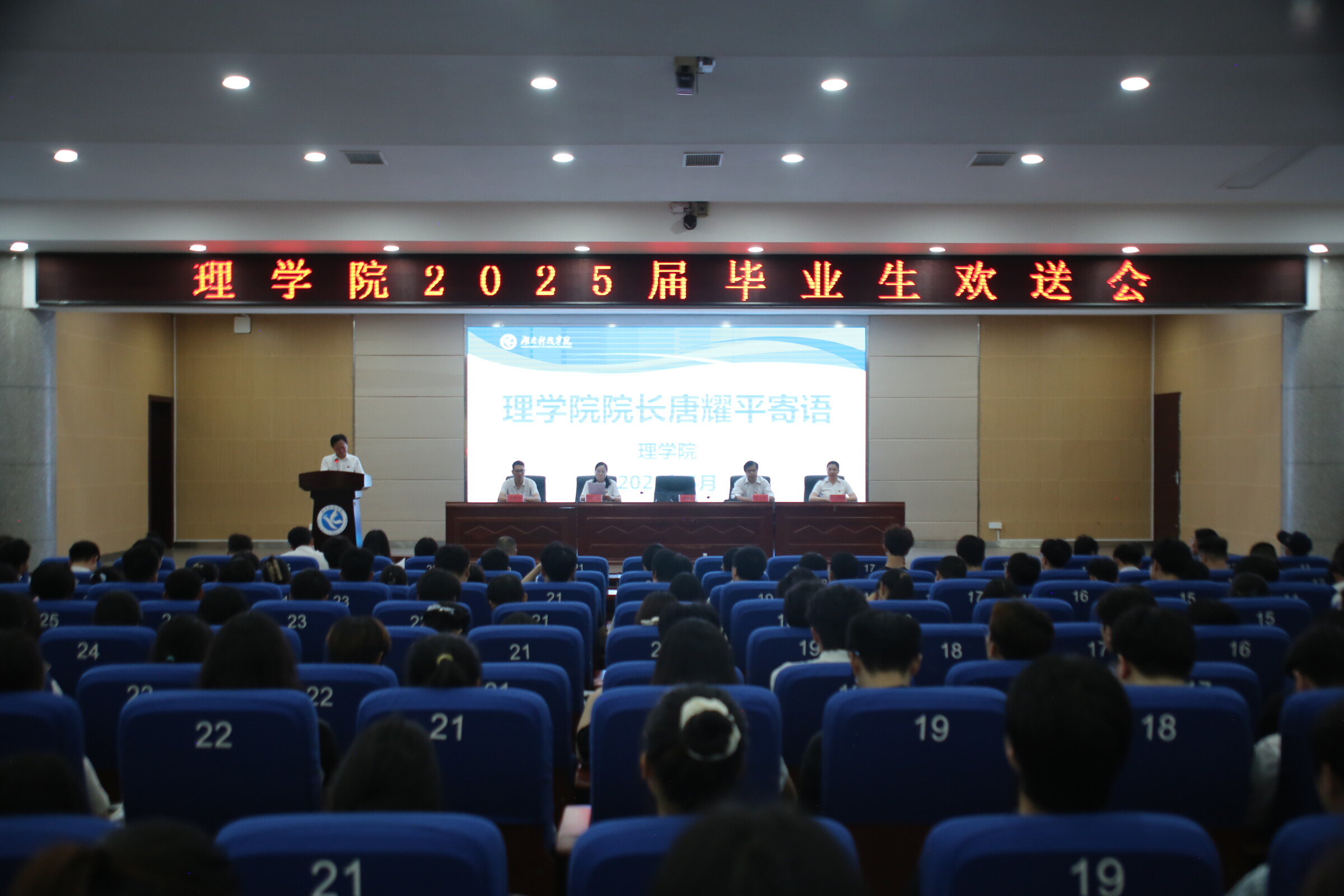 本网讯(通讯员 龙枚樱)5月20日,理学院2025届毕业生欢送会在潇湘大讲堂隆重举行。理学院院长唐耀平、理学院党总支书记刘华、院领导班子、校园网负责人郑鹏、毕业班辅导员、班主任出席,理学院2025届全体毕业生参加。