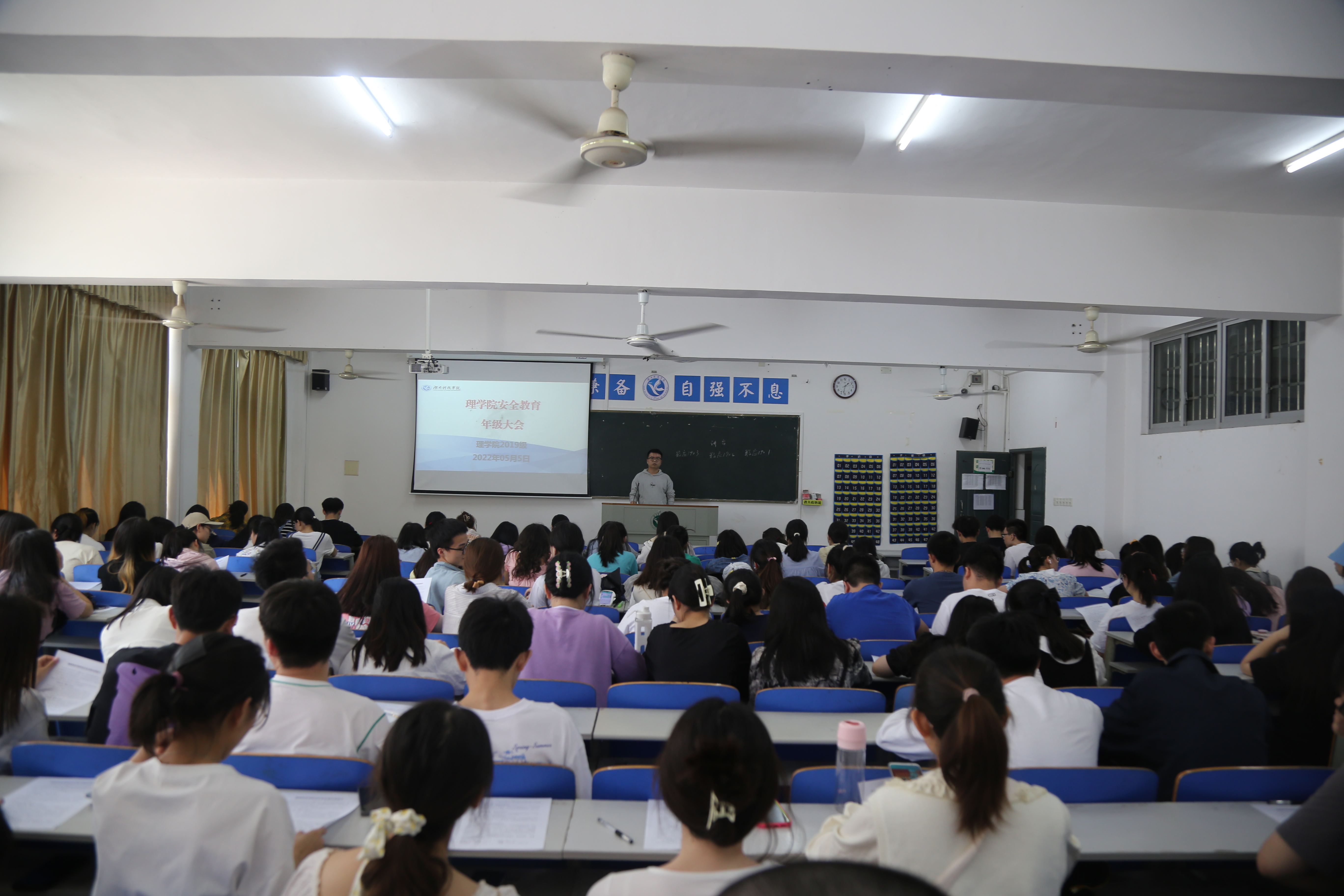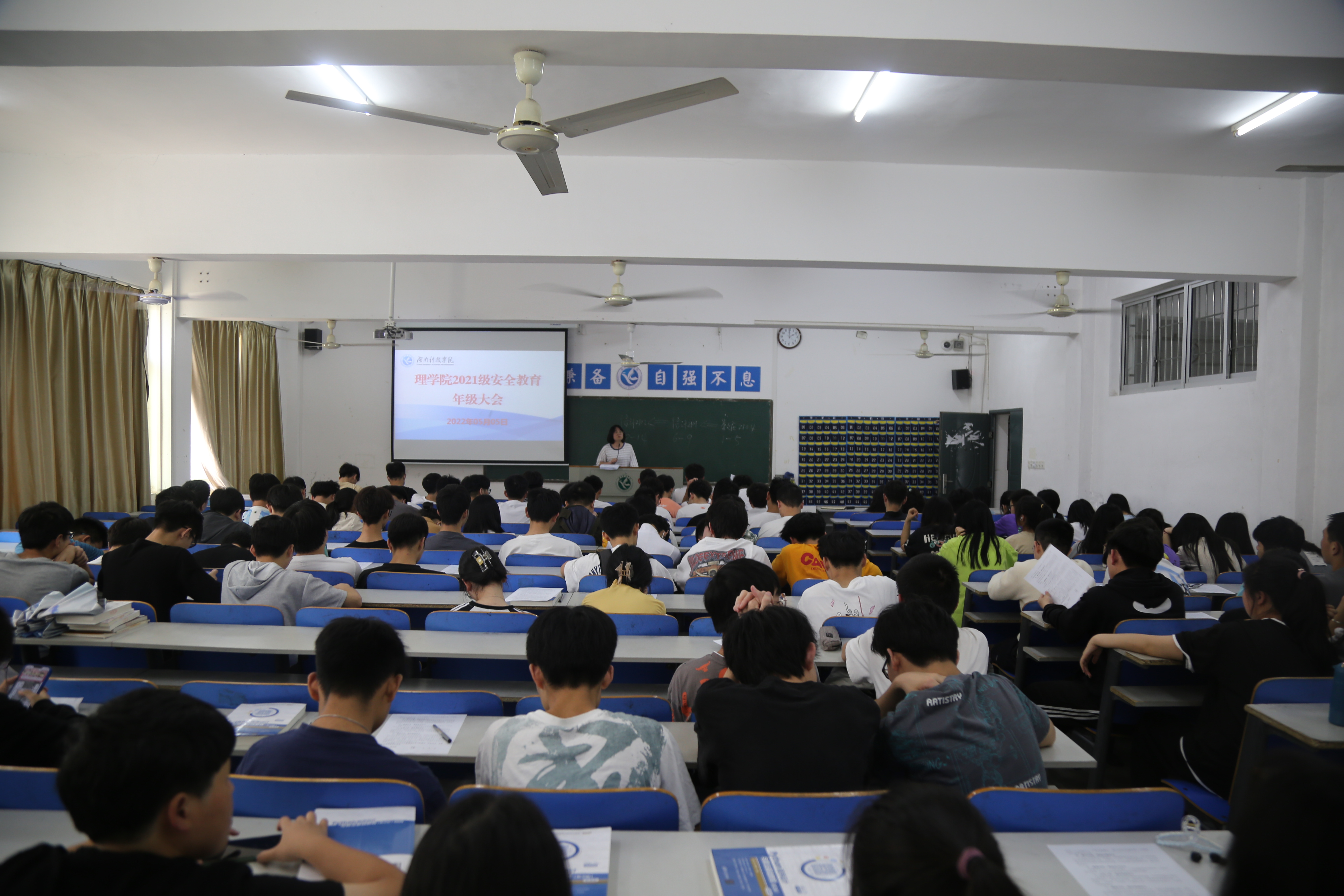 本网讯(通讯员袁展华)5月5号,为加强学生的安全意识教育,提高学生的自我防范能力,理学院分年级举行了全员安全教育大会。