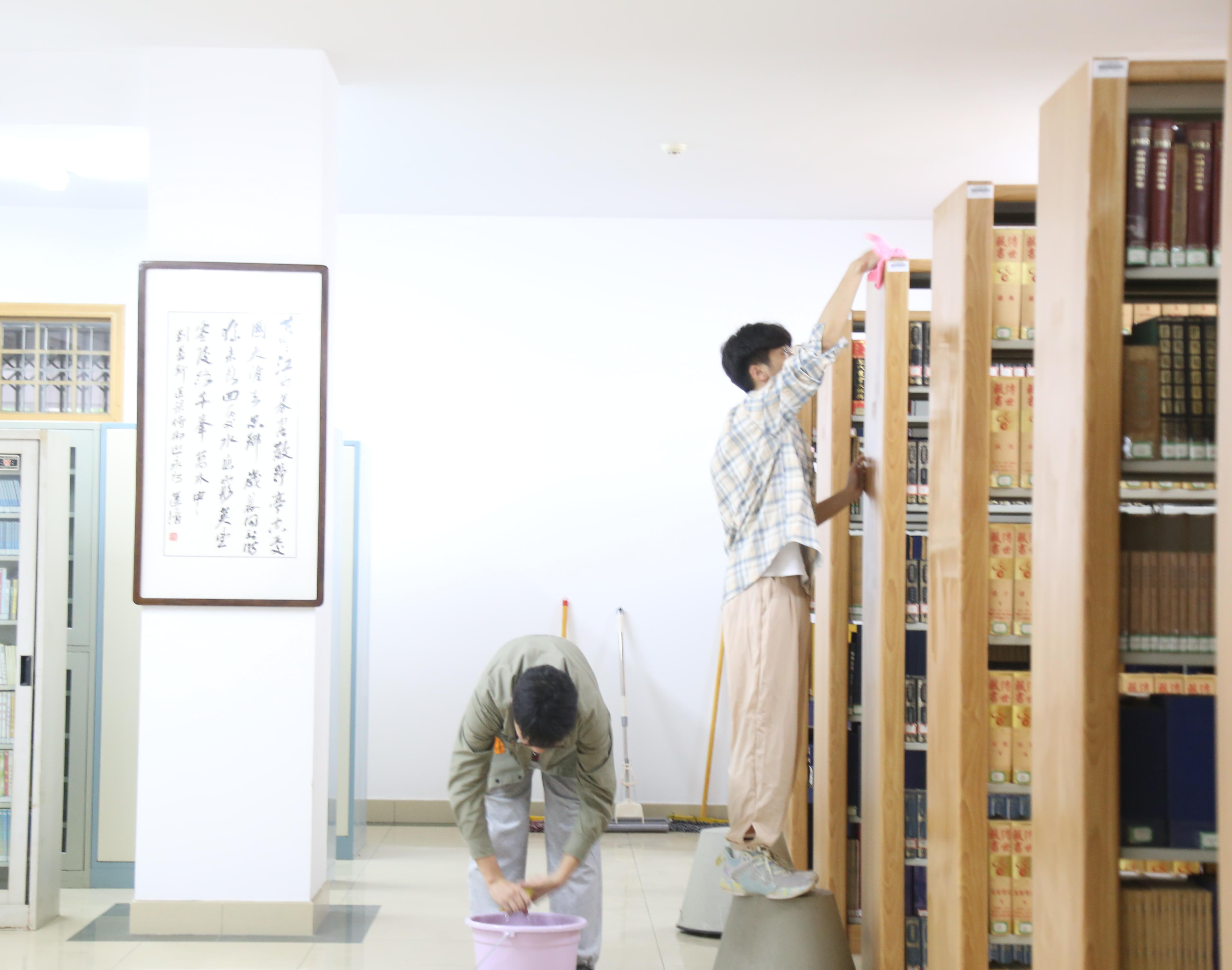 下午三点,志愿者们在老图书馆门口集合。在简单的分组、分工之后,志愿者们开始整理书籍,打扫卫生。在图书馆老师的帮助下,他们准确无误地将每一本书放到了属于它自己的位置。拂去书籍上的灰尘,将书架擦得一尘不染,还原图书馆干净整洁的面貌。热爱劳动是中华民族的传统美德,尽管累到满头大汗,每位学生党员都绽放着开心的笑脸。