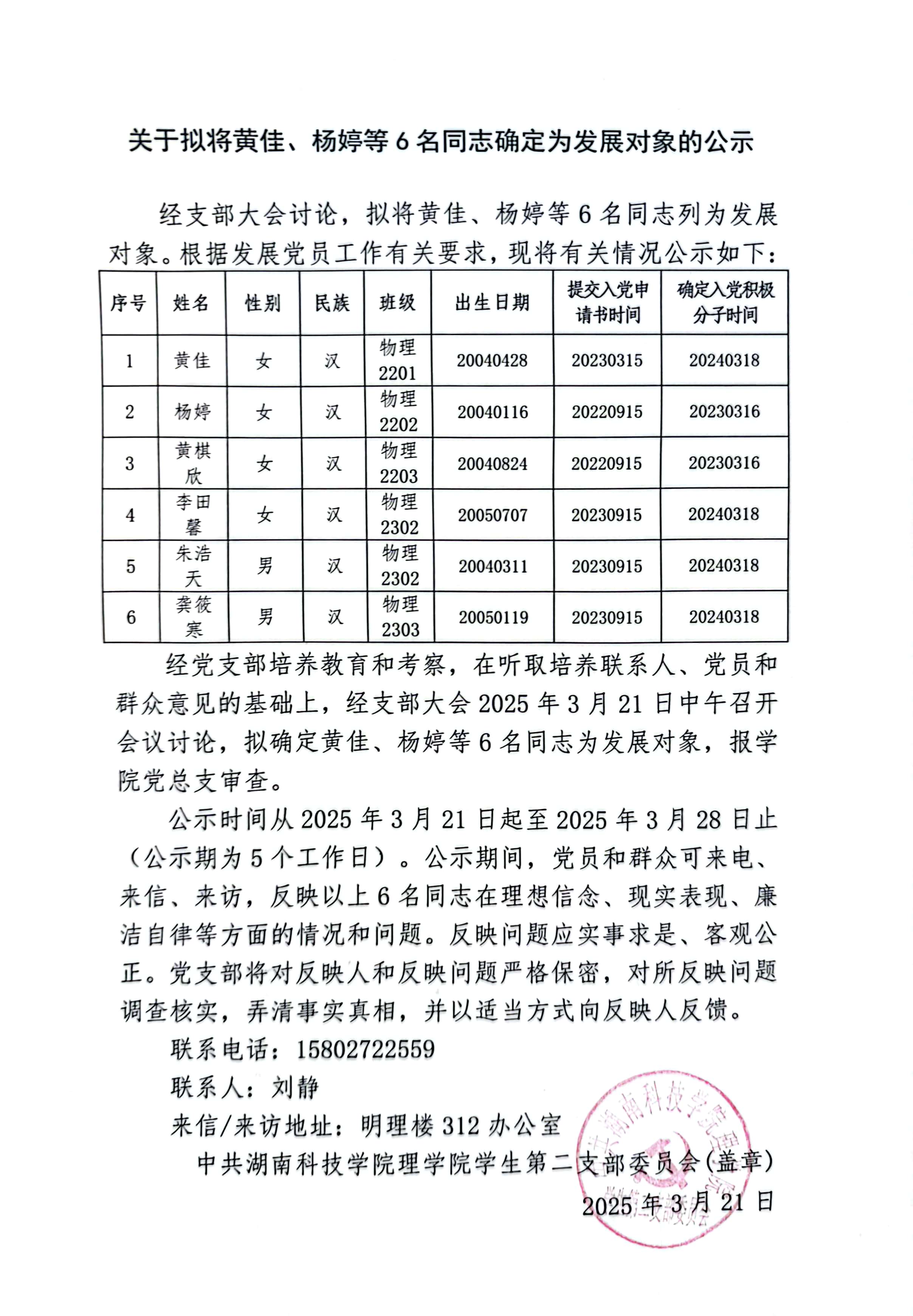 关于拟将黄佳等16名同志确定为发展对象的公示