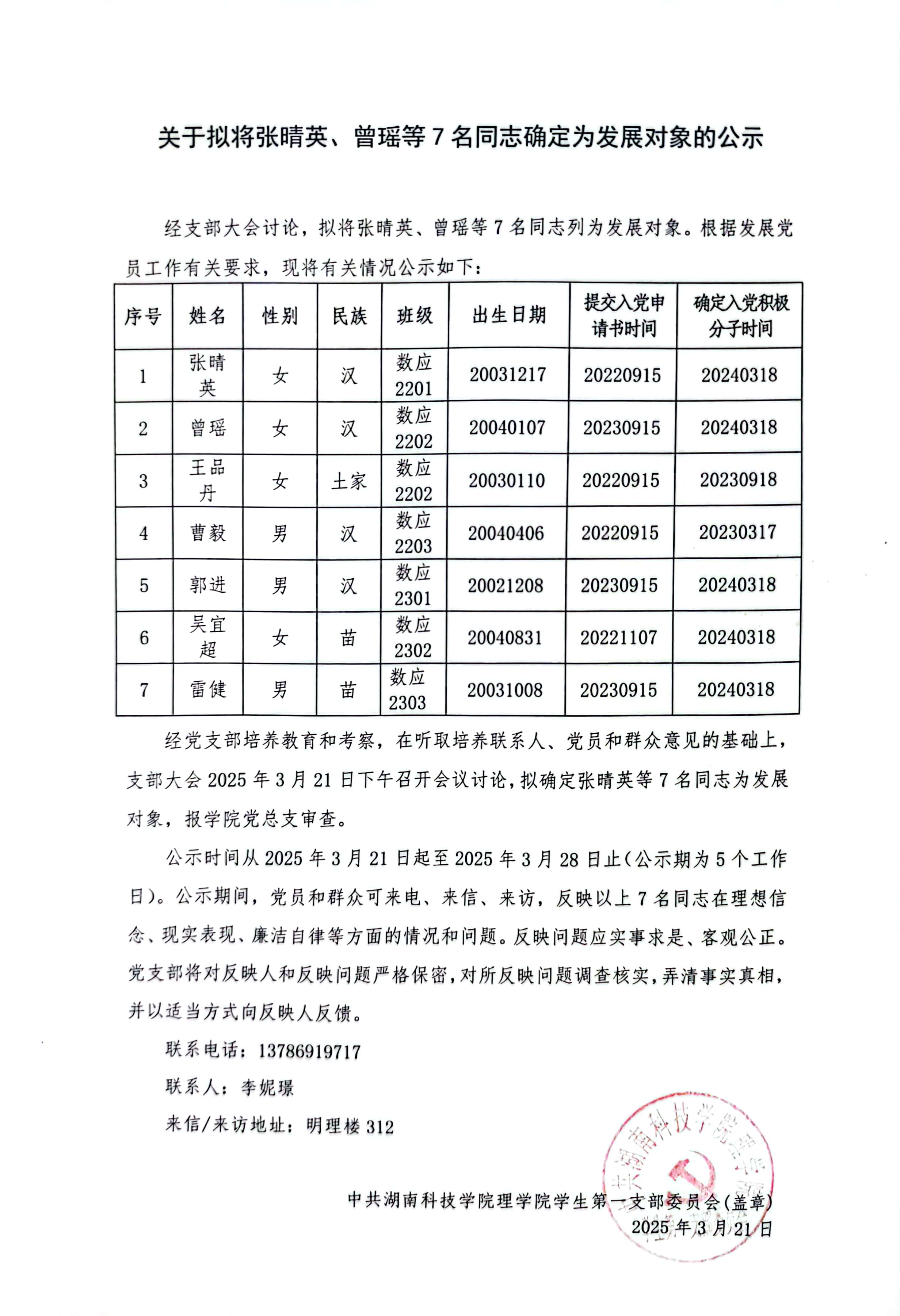 关于拟将曾慧等15名同志确定为发展对象的公示