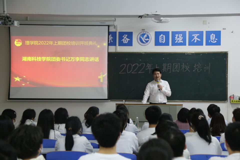 本网讯(通讯员 陈刚)4月13日晚,理学院2022年上期团校培训班在明理楼307开班。304am永利集团官网团委书记万李出席典礼并讲话,理学院党总支副书记兼副院长欧阳素勤、全体辅导员参加,开班典礼由理学院团总支书记杜俊杰主持。