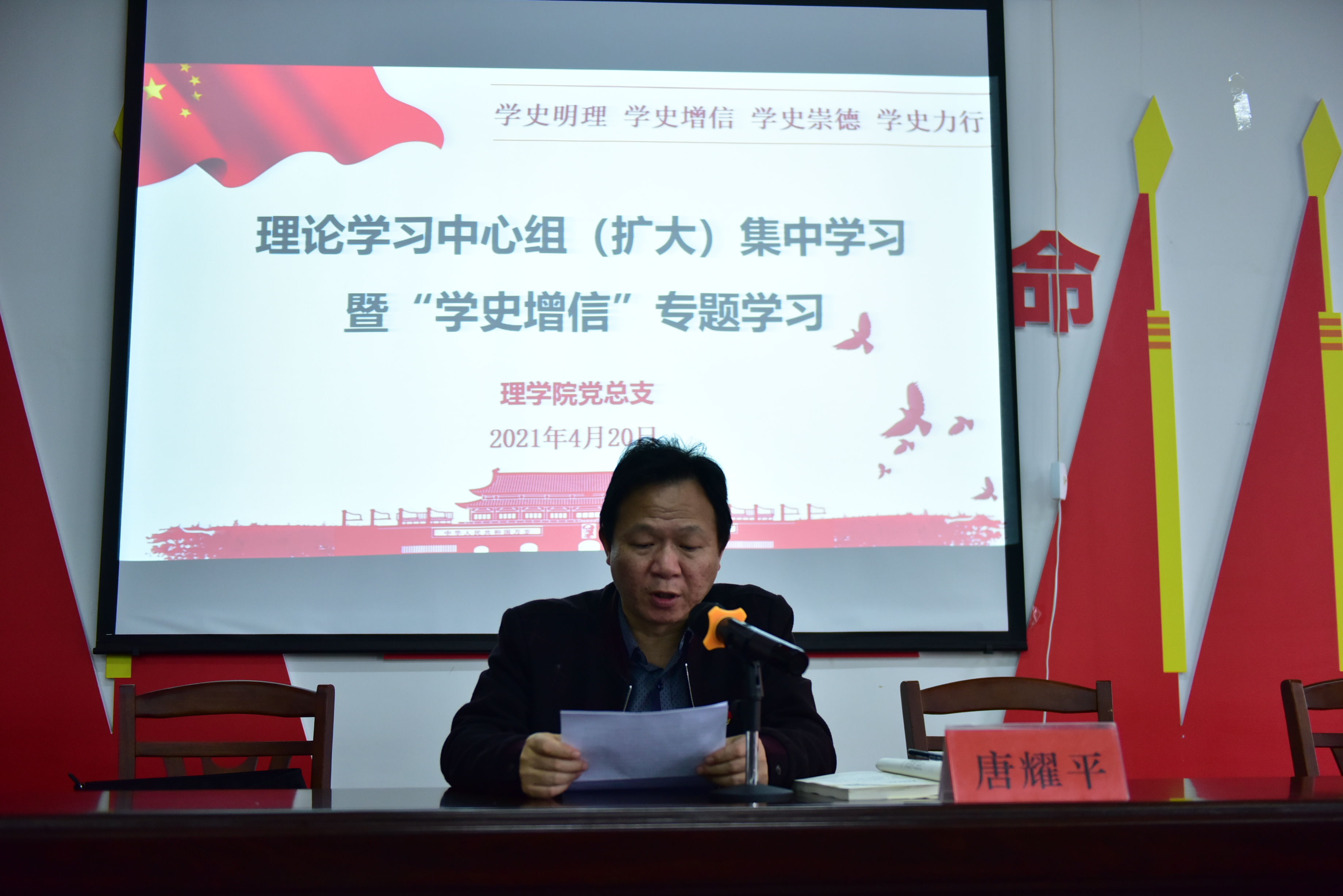 在党总支理论学习中心组(扩大)集中学习暨“学史增信”专题党课上,唐卫华以《信仰的力量——湘籍无产阶级革命家的理想信念》为题,从“湘籍无产阶级革命家理想信念的形成条件、主要内容、现实启示”三个方面,对“信仰的力量”进行了深刻阐释。