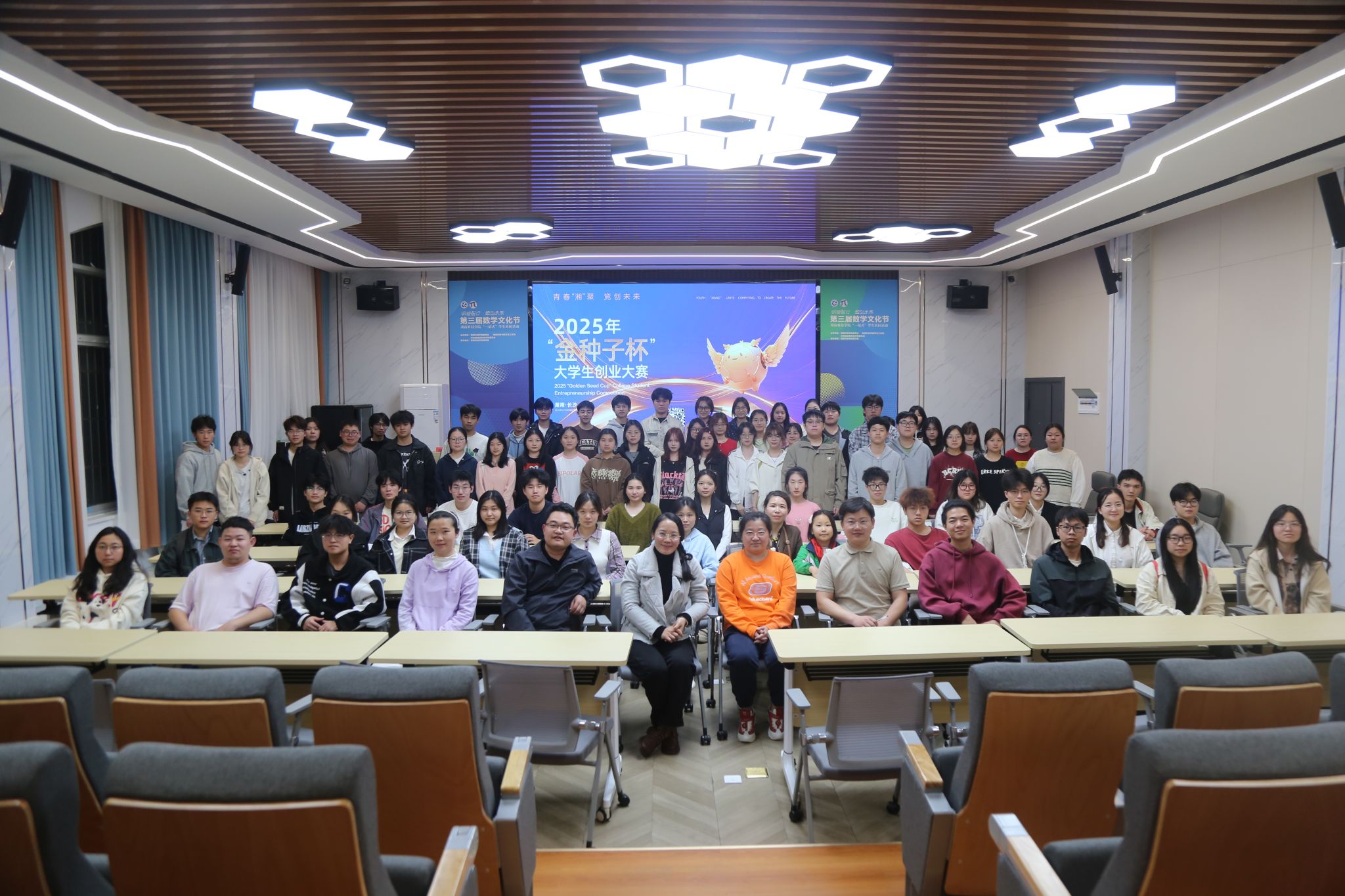 讲座伊始,主讲人周忠夏详细介绍湖南推出支持大学生创业的“七个一政策”,积极鼓励学子参与创业大赛,随后从“项目从何处来”、“项目何处打磨”两个方面对2025年金种子杯大赛和中国国际大学生创新大赛的赛程安排进行讲解。周忠夏老师以金色年华团队的“沐领社区食堂的积极老龄化智慧支持”的创业项目为例,向师生展示他们的项目成果,并且从“科创新”、“农创新”、“文创新”等多个角度总结如何进行创新创业。最后吴培老师以科研思维思考大赛,用自己的创业经验,启发性十足。