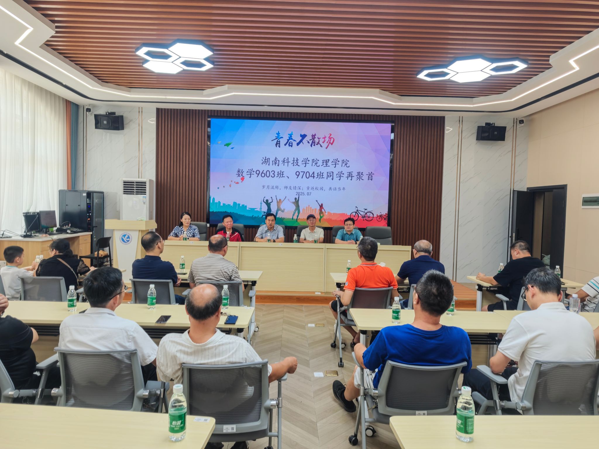 黄创霞校长向校友介绍学校发展情况,从学科建设突破、申硕工作推进,到学术研究成果、各类奖项收获,特别提到近年来涌现的优秀校友,以及学院学生在国内、省内学科竞赛中的佳绩和教师获得的多项教学奖,全面展现学校向上发展态势,让校友直观感受母校进步。唐耀平代表学院欢迎校友,介绍了理学院近年在学科建设、人才培养、科研创新、师资队伍等方面的成果,特别提及数学与应用数学专业、物理学专业师范专业认证进展,强调校友是学院宝贵财富,期待大家为学院建设建言献策,也深刻思考进一步为校友做好服务和职业发展支持。刘华表示,学院始终关注校友成长,为校友们的成就自豪,希望以此次返校为契机,加强校友与母校、学弟学妹的联系,传承理院精神。