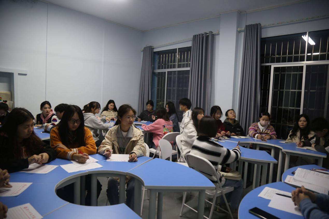 本网讯(记者 赵江南)为了更好地提升朋辈心理互助员的危机识别意识与朋辈帮扶技能,4月6日晚,我院联合马克思主义学院于心理中心二楼团体辅导室开展朋辈心理互助员研讨沙龙,活动由我院心理专干赵江南和马克思主义学院心理专干曹惠如联合主持,两院的心理健康服务部干事与班级心理健康委员参加。