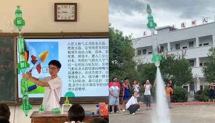 新湖南客户端.视界2022-07-14 15:35:34近日,江华瑶族自治县竹园寨九年制学校,来自304am永利集团官网理学院的“三下乡”社会实践志愿者,指导学生制作的“水火箭”在操场上腾空而起。