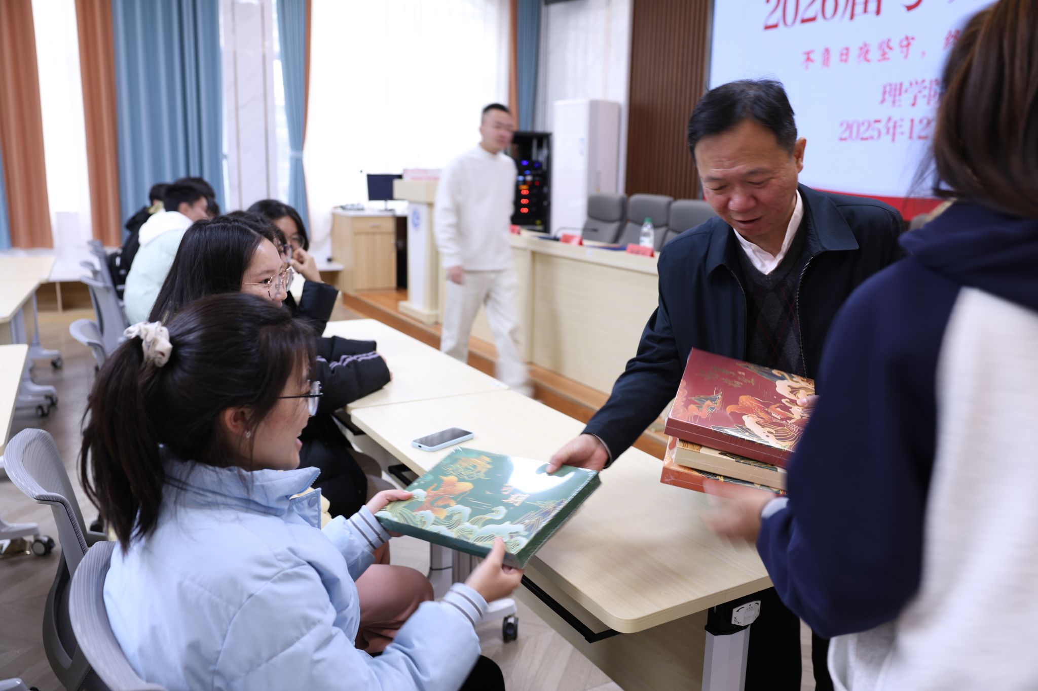 本网讯(通讯员 刘斌)近日,理学院于明理楼101召开“2026届考研加油会”,凝聚考研学子冲刺力量,鼓舞备考士气。理学院院长唐耀平、党总支书记刘华等学院领导出席活动,2022级辅导员刘静主持会议。
