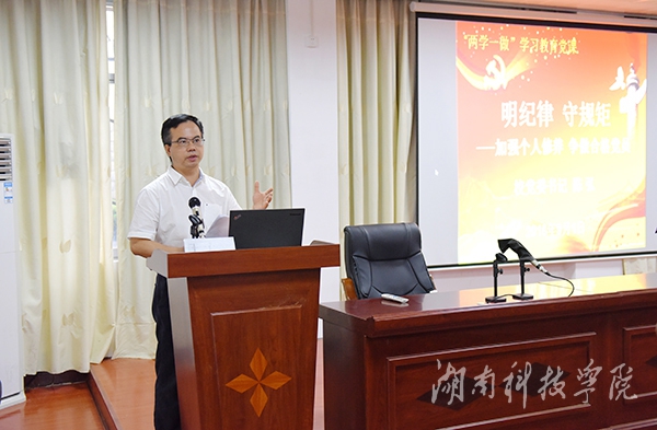 陈弘强调,要切实坚持以《党章》为遵循,用严明的纪律维护党的团结统一,始终做到明纪、守纪,坚持自我修炼不断提升修为,把明纪律守规矩的具体要求落实到学校发展中来。