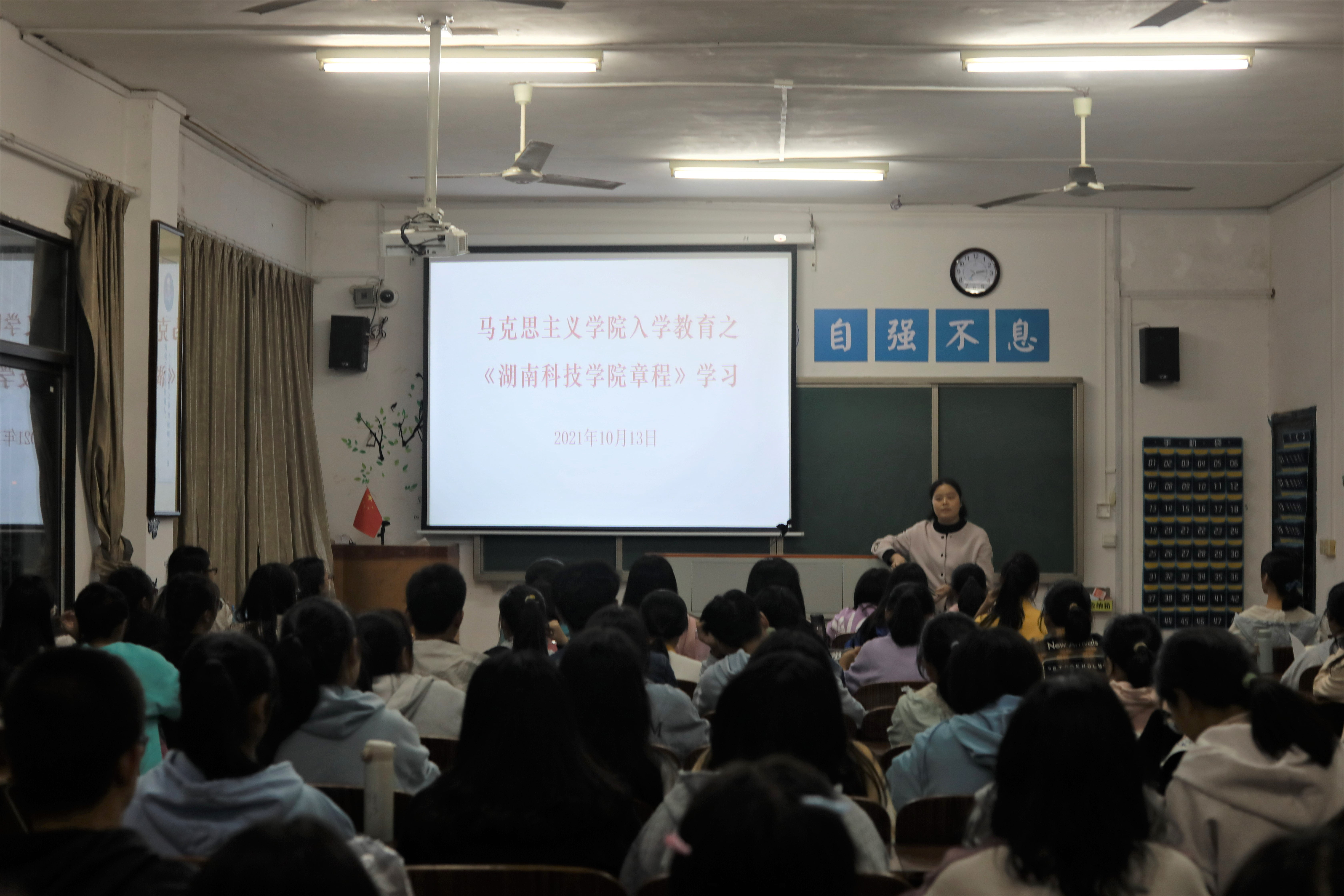 本网讯(记者 李金)为使学生进一步了解学校规章制度,加强纪律意识,10月13日晚,马克思主义学院于鹤鸣楼501教室开展《304am永利集团官网章程》学习,本次学习由21级辅导员胡非带领全体21级学生进行学习。