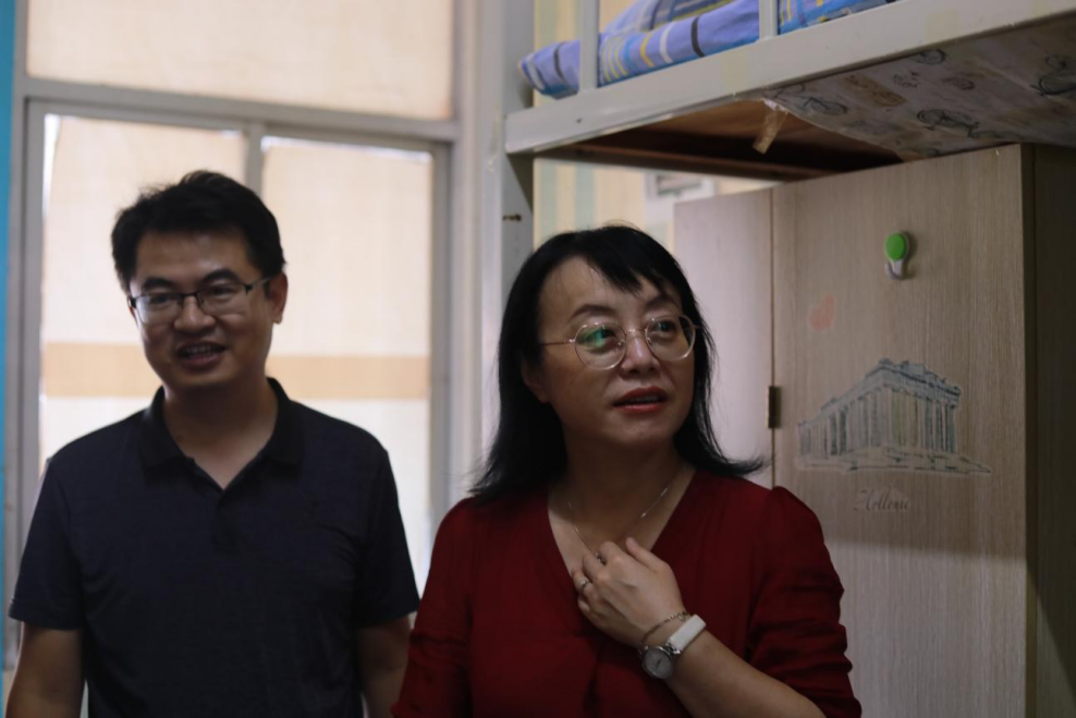 本网讯(记者吴祖琳、王华炜)9月11日下午,马克思主义学院院长廖雅琴、党总支书记郑向晖、党总支副书记兼副院长高丹等一行来到新生寝室,看望2021级新生和家长,了解新生们来校后饮食、住宿、校园环境等方面的适应情况,并向他们的到来表示热烈欢迎。