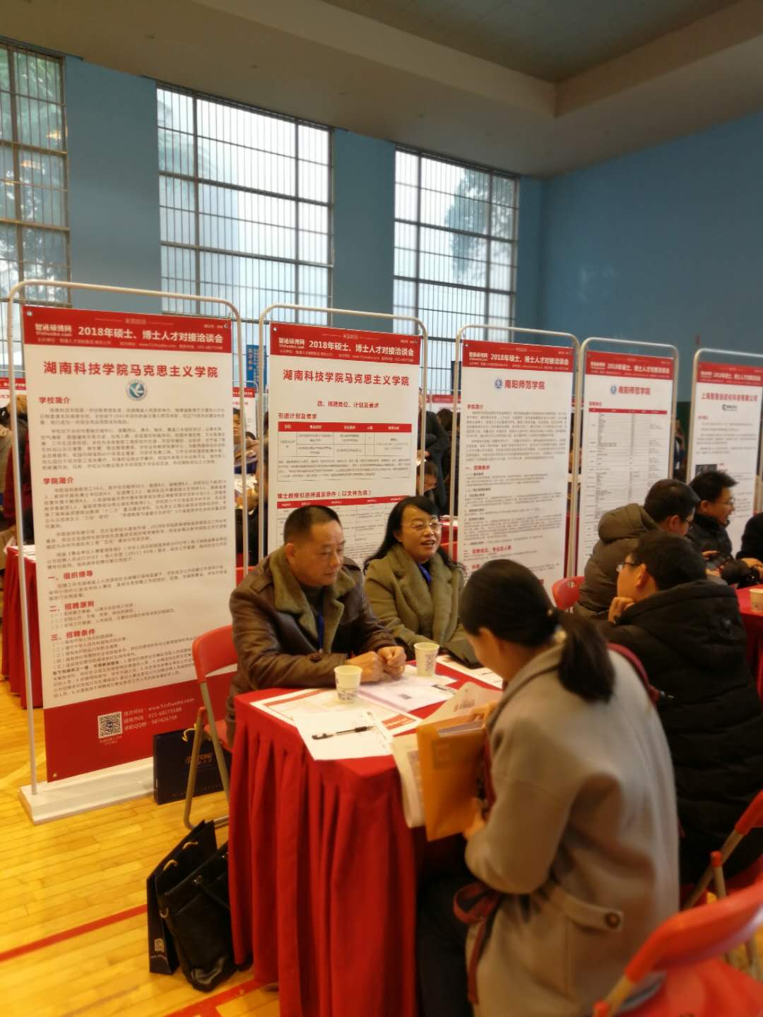 本网讯(通讯员吴海文)为了筑牢马克思主义理论省级应用特色学科的研究基础,精选研究团队,凝练研究方向,多出高水平研究成果,筑巢引凤,招聘优秀人才,12月17-19日,304am永利集团官网马克思主义学院廖雅琴院长一行3人赴南京大学参加“2018年全国巡回硕士、博士人才对接洽谈会—南京站”招聘会。此次招聘会前来应聘的有海归、博士以及985高校的优秀硕士多人,通过面对面的交谈,有多位高层次人才已有初步意向,取得了预期的成果。