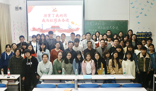 本网讯 (通讯员刘冰鑫 蔡晓倩)3月13日晚,党委书记陈弘作为马克思主义学院思政1701班班主任,在鹤鸣楼407教室参加该班新学期举行的“厉害了我的国,我与祖国共奋进”观影交流主题班会。