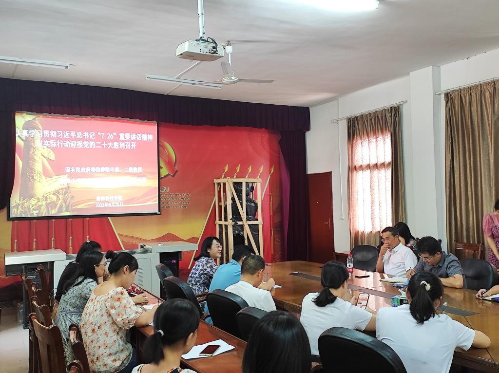 本网讯(记者 符小勇)9月28日上午,国务院政府特殊津贴专家、二级教授、湘潭大学韶峰学者、博士生导师曾天雄教授应邀来永利官网马克思主义学院作题为《认真学习贯彻习近平总书记“7.26”重要讲话精神 以实际行动迎接党的二十大胜利召开》的专题辅导报告,并与永利官网马院青年教师亲切交流。辅导报告会由马克思主义学院院长廖雅琴教授主持。