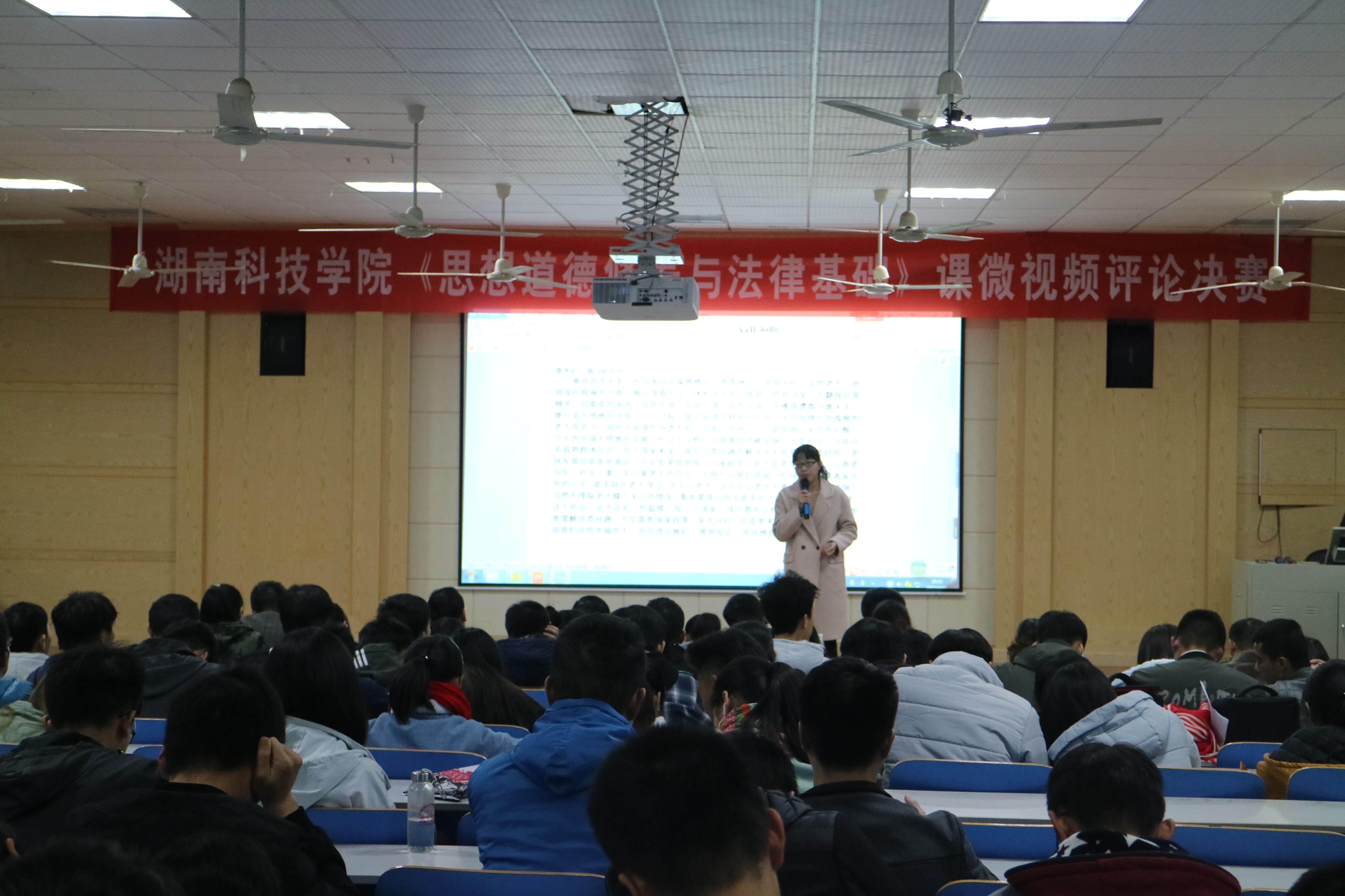 本网讯 (通讯员贺茶湘彭超)为贯彻落实党的十九大精神,深入学习习近平新时代中国特色社会主义思想,推动永利官网思想政治理论课教学改革。12月8日晚,马克思主义学院在致远楼举行《思想道德修养与法律基础》课微视频微评论评比决赛。该院党总支书记唐森树以及教务处、教学质量管理处的相关负责人等出席并担任评委。