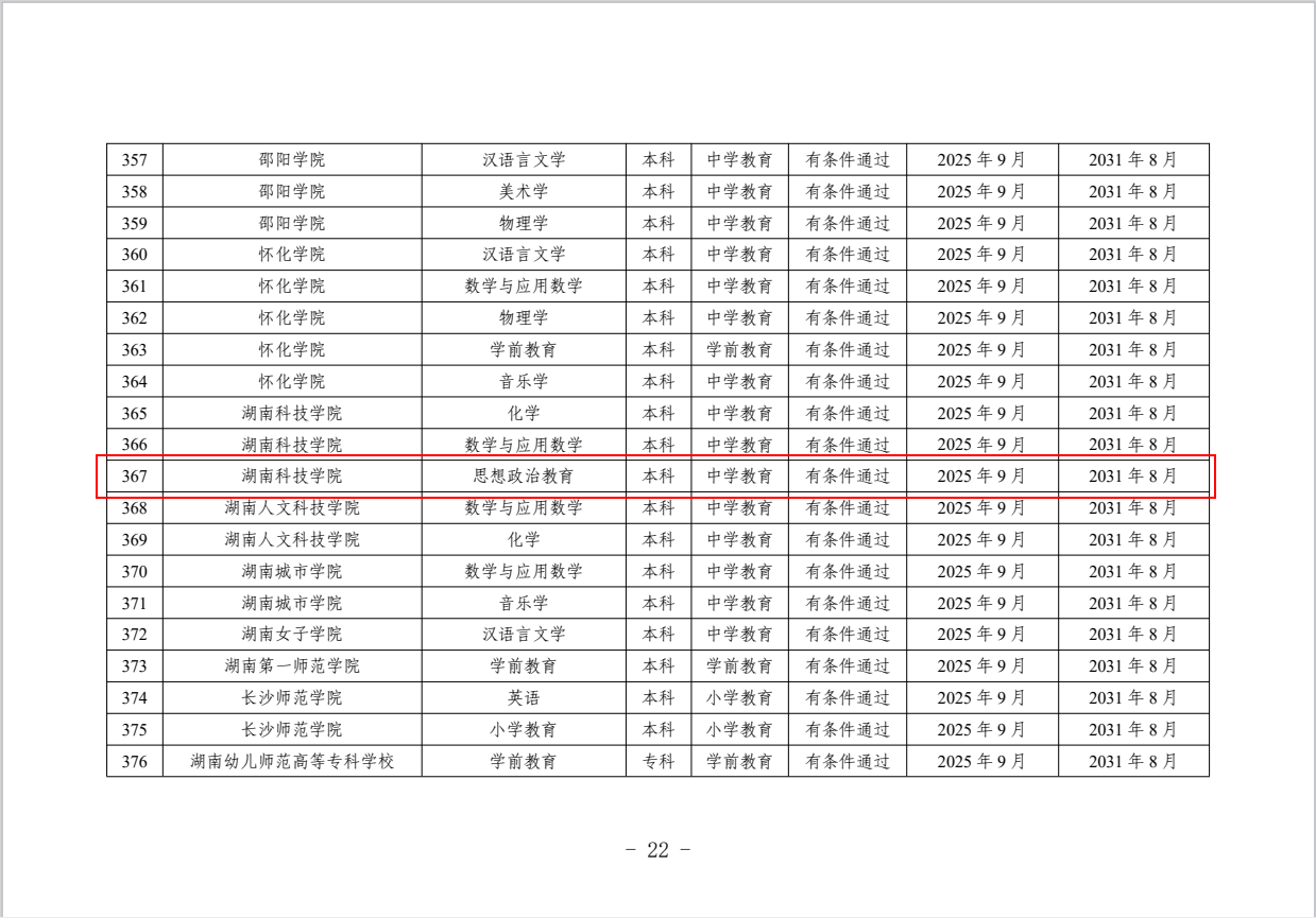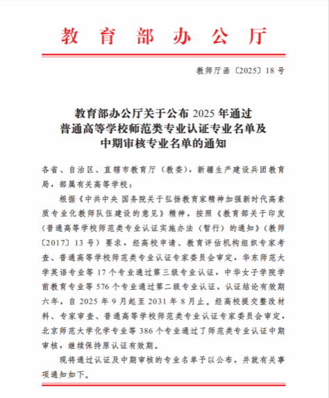 本网讯(记者 吴志伟)近日,教育部办公厅发布《关于公布2025年通过普通高等学校师范类专业认证专业名单及中期审核专业名单的通知》,我院思想政治教育专业成功通过普通高等学校师范类专业第二级认证。该专业同时成为永利官网本年度通过此项认证的三个专业之一,标志着其师范类专业建设质量与人才培养水平获权威认可。