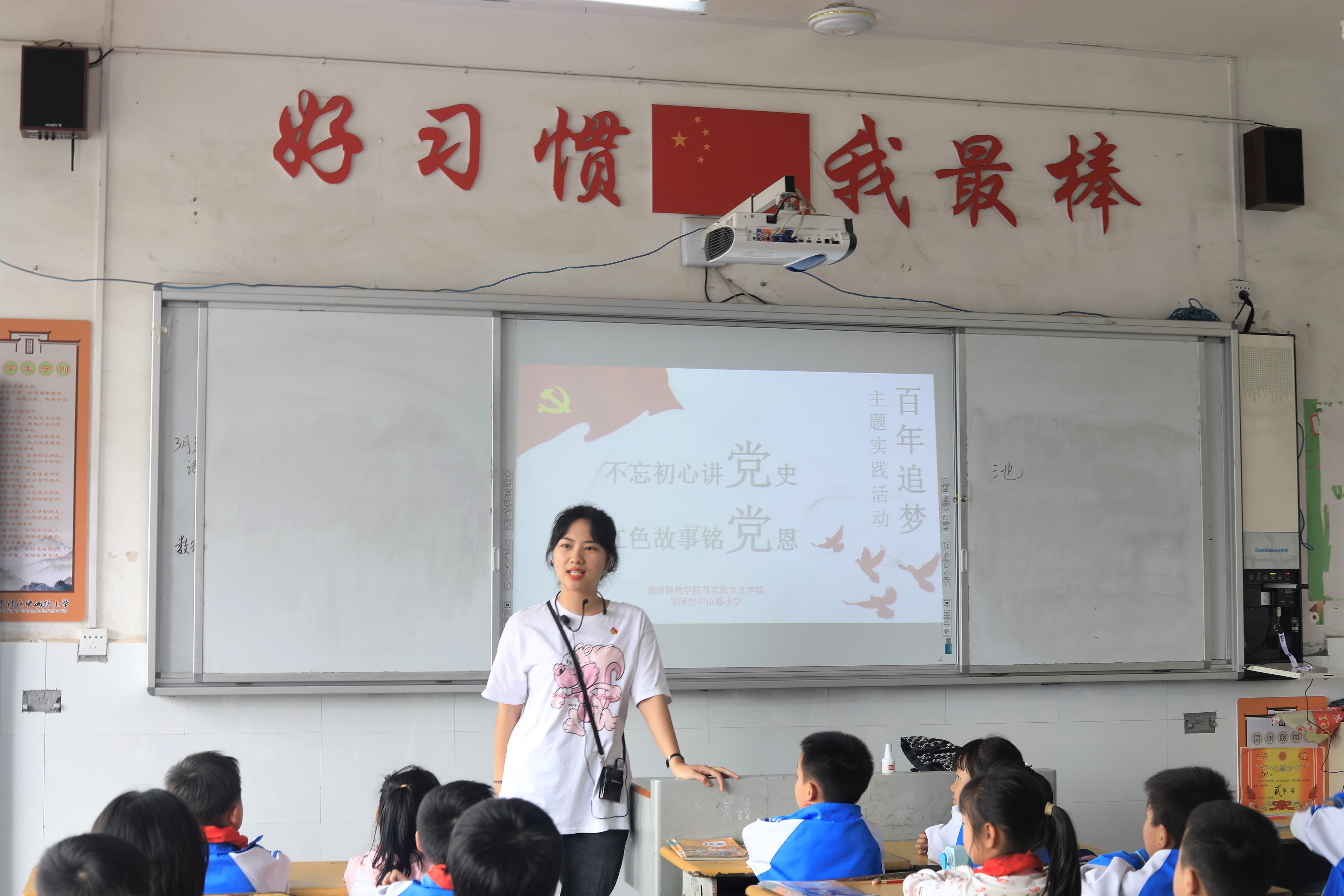 本网讯(通讯员 谢松林)峥嵘百年,共庆华诞。2021年是中国共产党成立100周年,也是“两个一百年”奋斗目标的重要历史交汇点。在中国共产党百年华诞即将来临之际,304am永利集团官网马克思主义学院思政专业学生发挥专业优势,积极承担党史知识宣讲责任,与永州市零陵区中山路小学建立长期合作关系,组织学生前往学校进行义教活动,将党史教育带入小学课堂,引导学生知党史,感党恩。